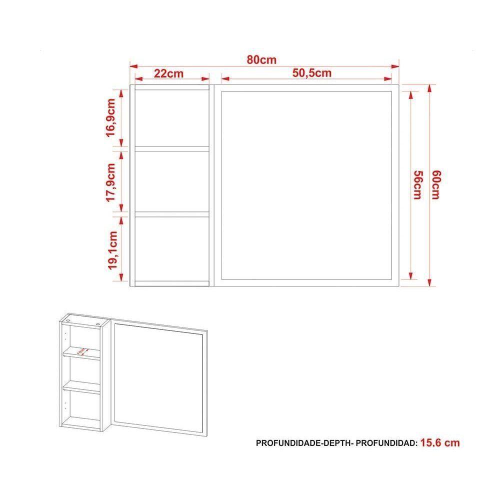 Espelheira De Banheiro Bn3645 80x60cm Amêndoa-branco - Tecno Mobili