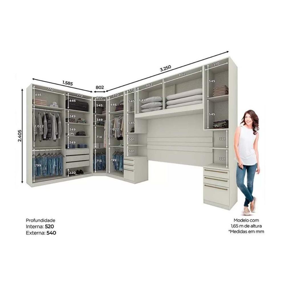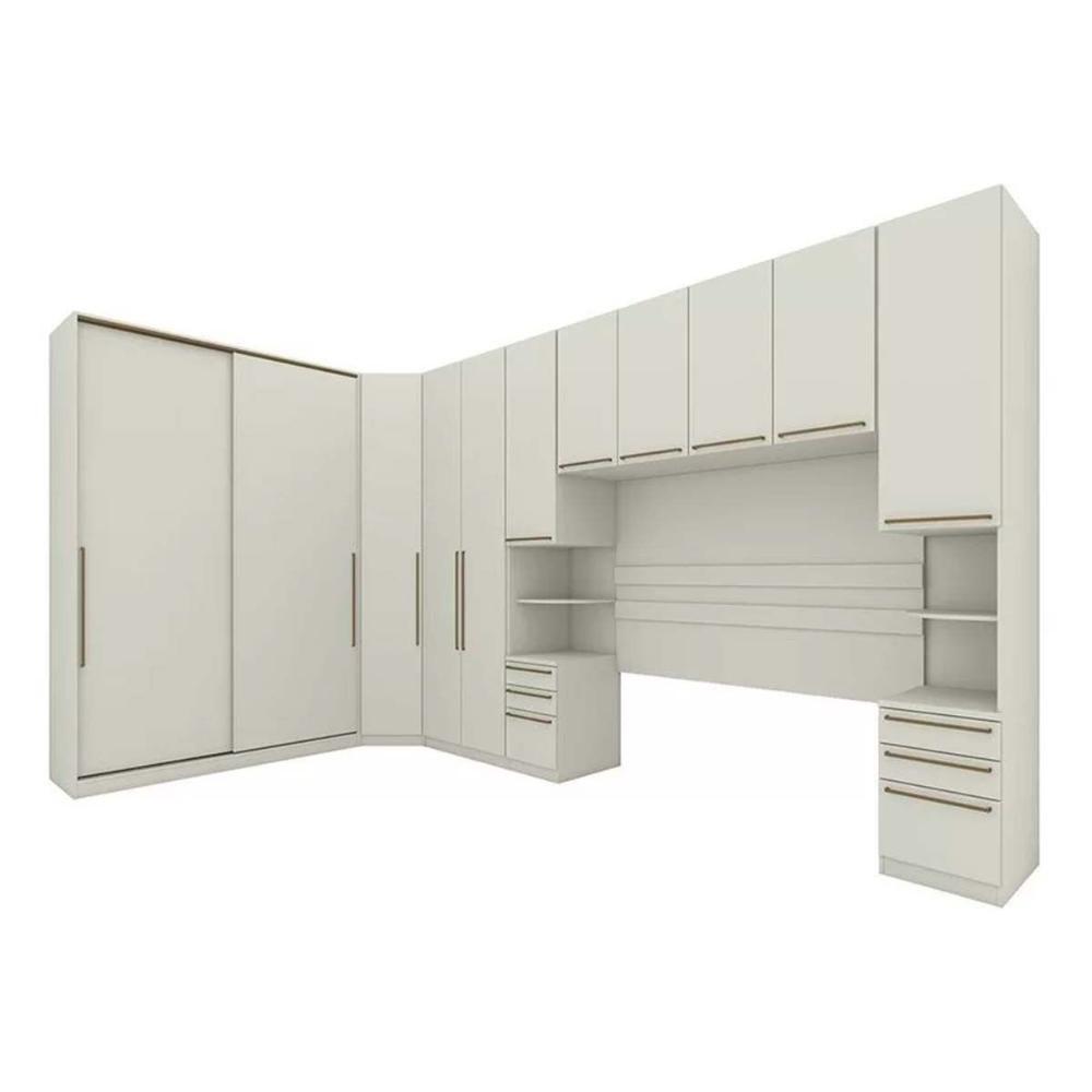 Quarto Casal Modulado Seletto 6 Peças (1 Ponte + 1 Closet Canto + 1 G Roupa 2Ptas + 1 G Roupas 2Ptas de Correr + 2 Complementos) QM124 Areia - Henn