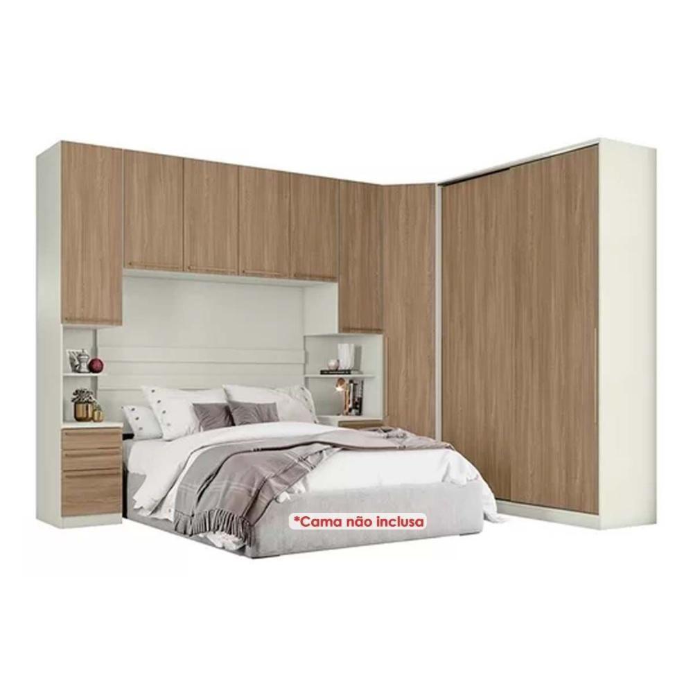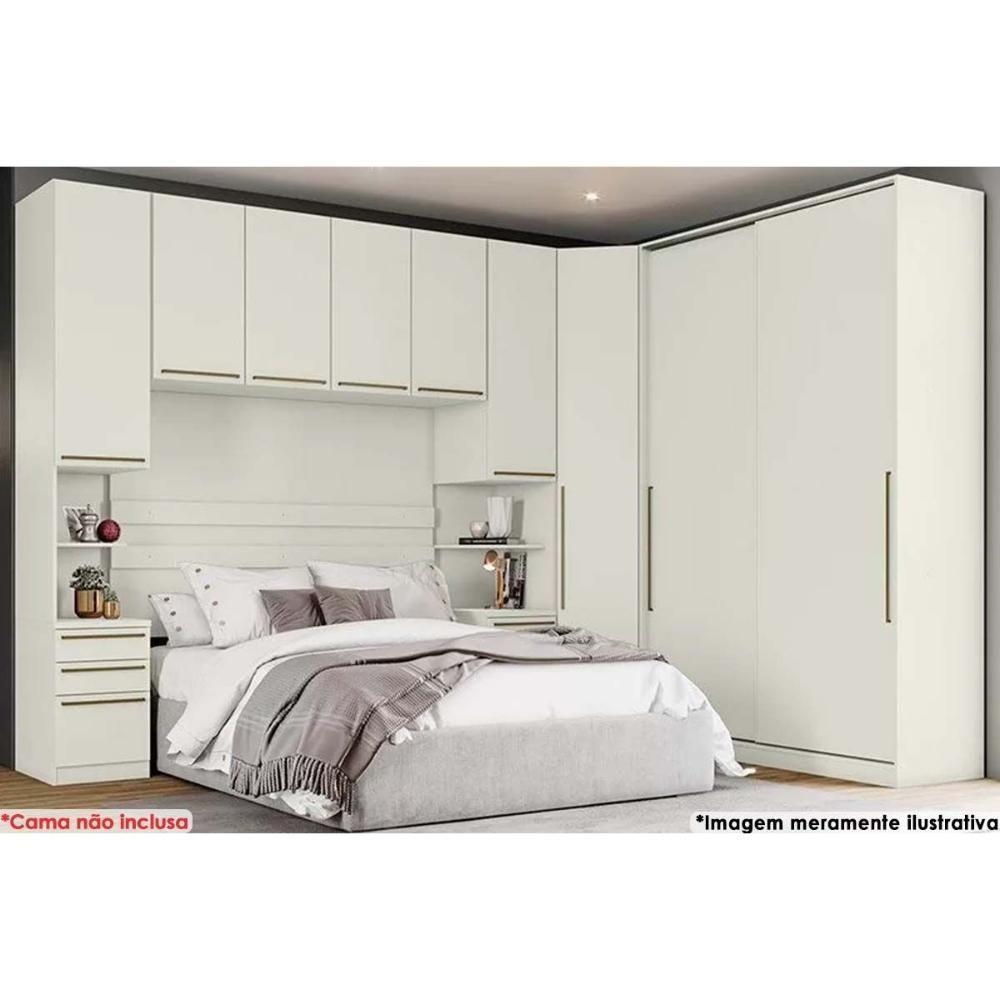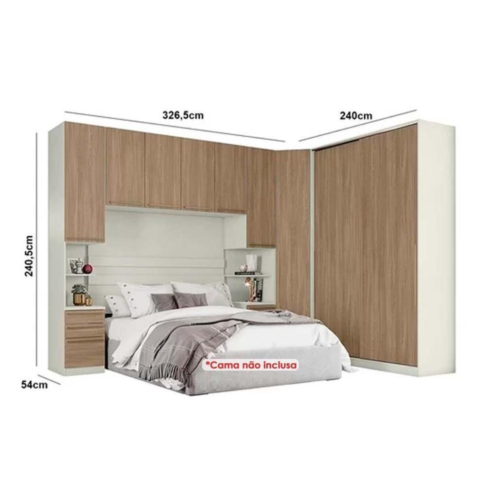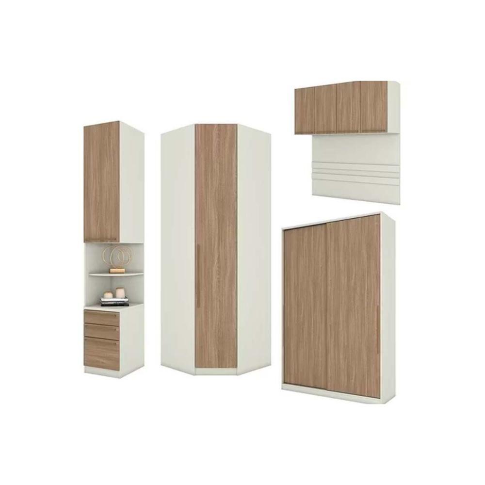 Quarto Casal Modulado Seletto 5 Peças (1 Ponte + 1 Closet Canto + 1 Guarda Roupa 2 Portas de Correr + 2 Complementos) QM121 Areia - Henn