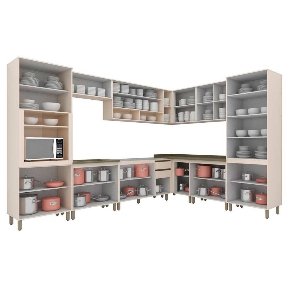 Cozinha Modulada Connect 13 Peças 4aéreos+4balcões+ 2 Paneleiros +3complementos C5p83 Off White2 Aéreos + 1 Balcão + 1 Complemento
