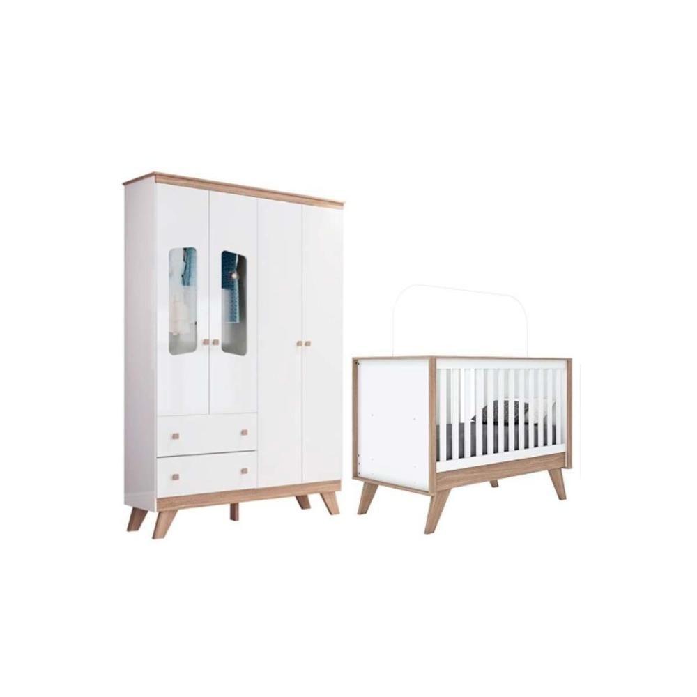 Quarto De Bebê Completo Confete 2 Peças (1 Guarda Roupa + 1 Berço) Qi64 Branco-jequitiba - Henn