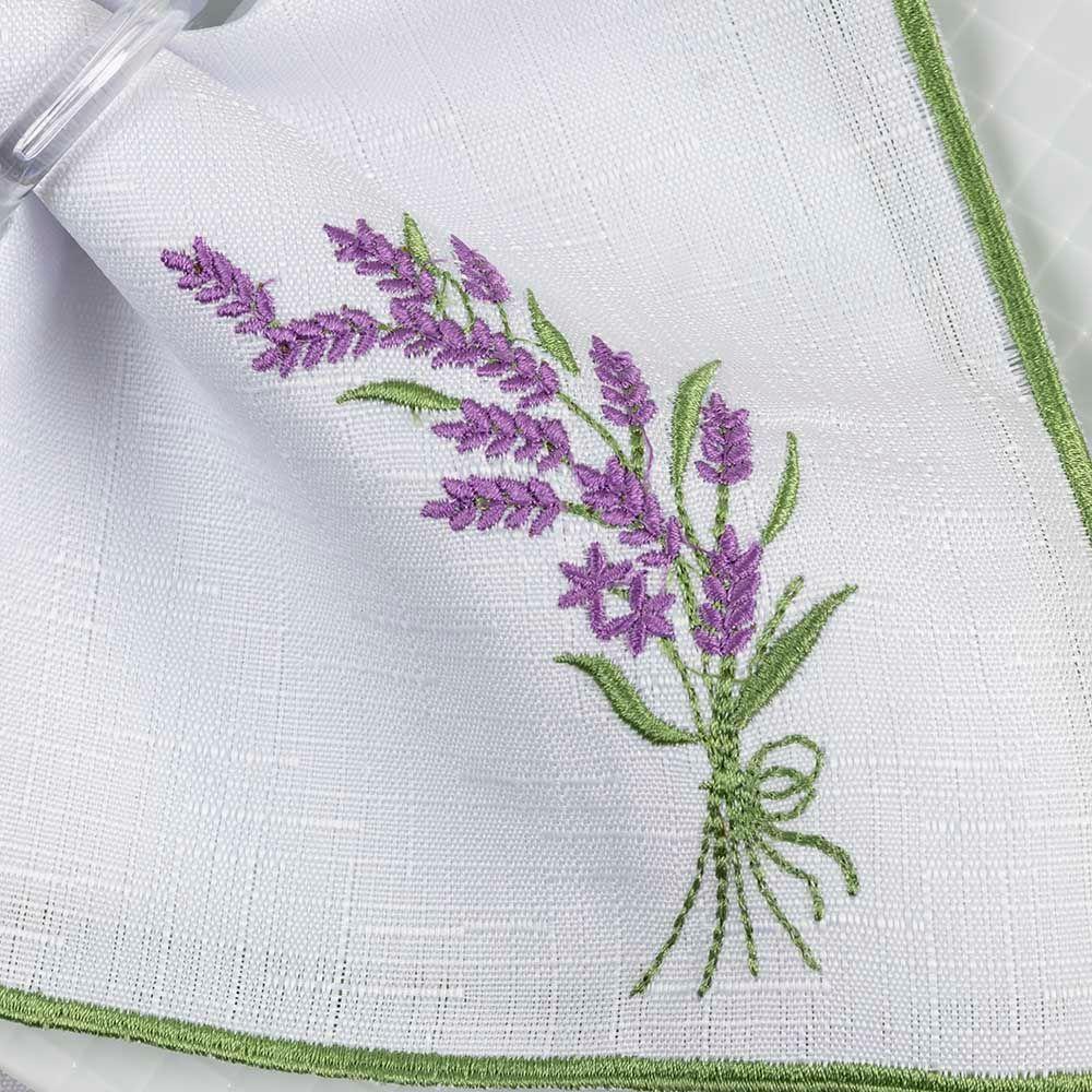 Kit 12 Jogos Americanos Guardanapos De Mesa Retangular Bordado Lavanda - Branco