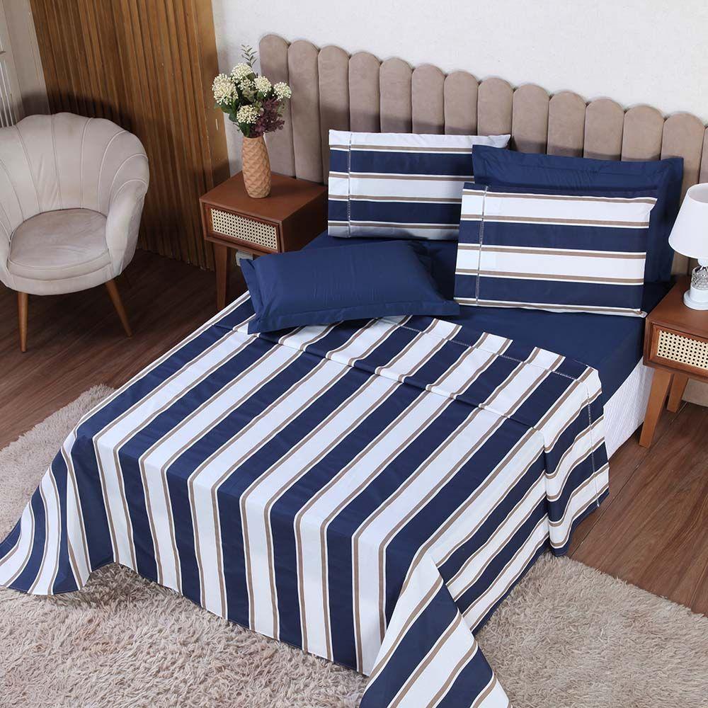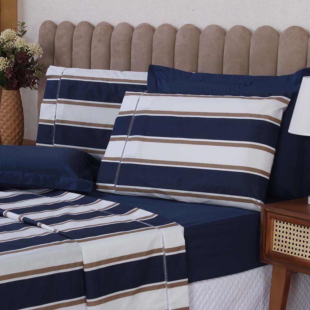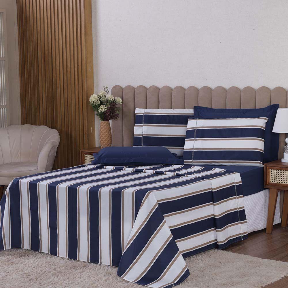 Jogo De Lençol Beatriz King 4 Peças Percal 180 Fios 100% Algodão Ponto Palito - Azul Marinho
