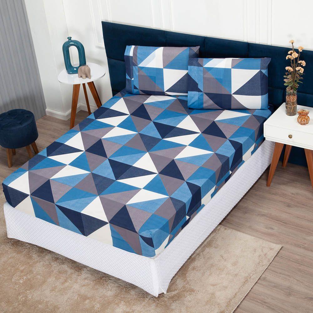 Jogo De Lençol Nuance Queen 3 Peças Malha Gel Estampado - Geométrico 26 - 100% Poliéster