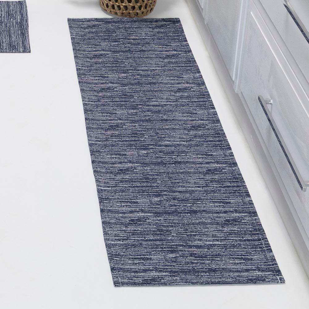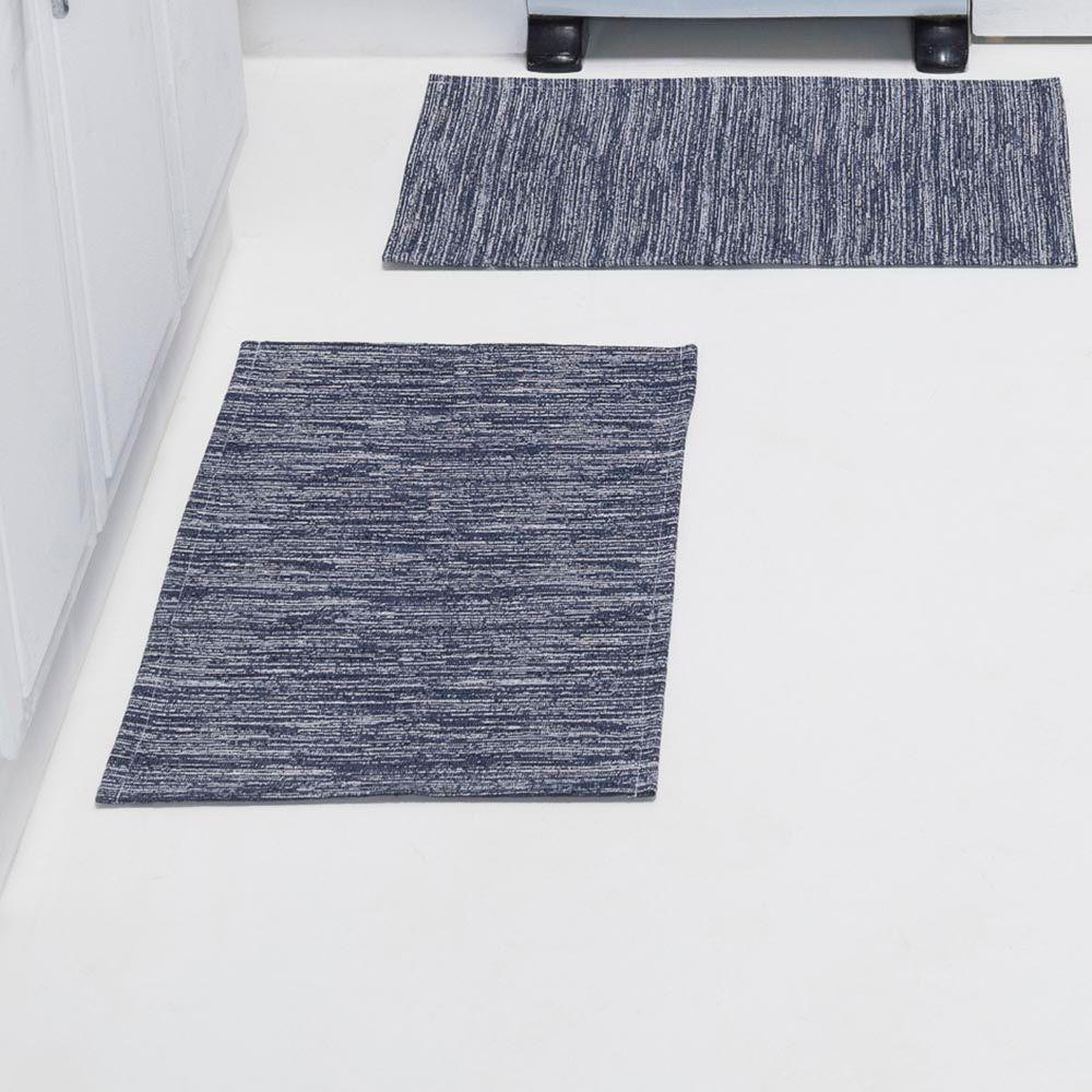 Kit Passadeira Tapete Cozinha 3 Peças Jacquard Base Antiderrapante - Marinho