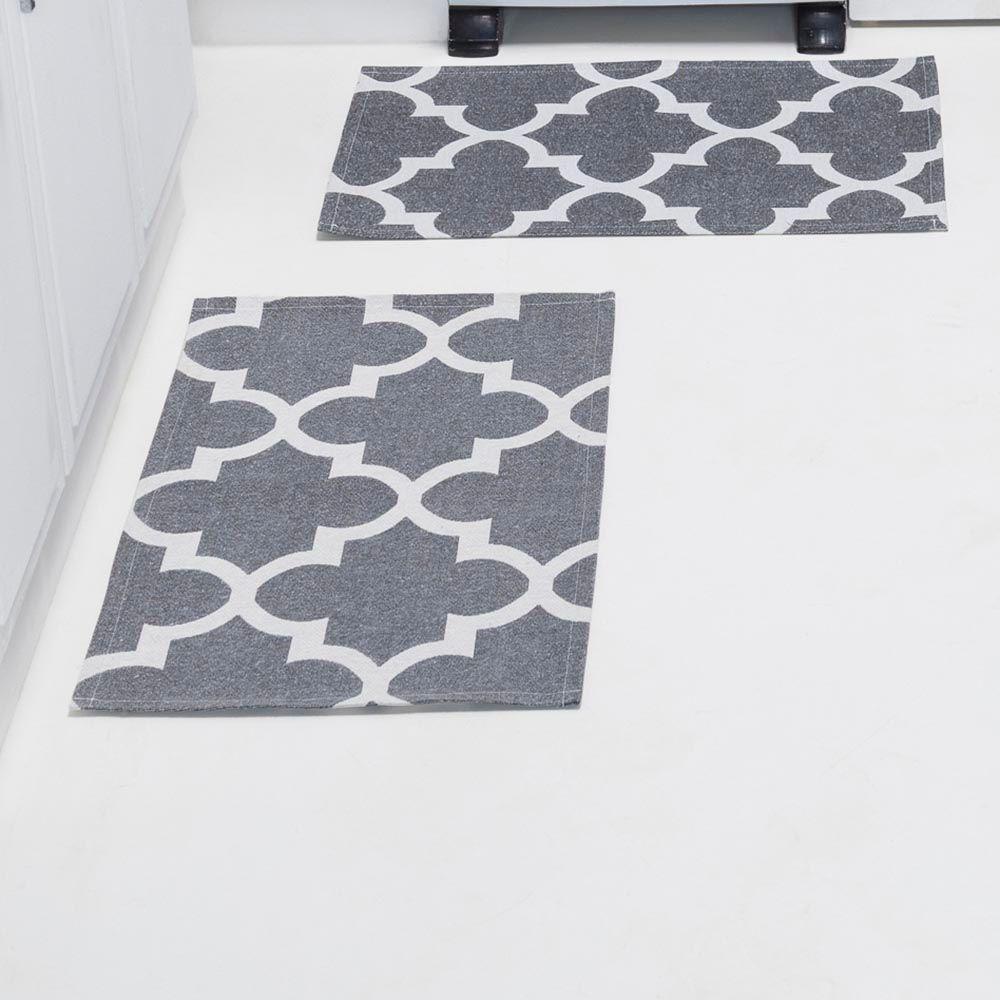 Kit Passadeira Tapete Cozinha 3 Peças Jacquard Base Antiderrapante - Medalhão CinzaO Kit Passadeira Tapete para Cozinha é ideal para quem busca praticidade aliada à sofisticação. Confeccionado em tecido Jacquard, oferece um visual elegante com texturas discretas que combinam facilmente com diversos estilos de decoração.A base antiderrapante garante maior segurança e estabilidade durante o uso, prevenindo escorregões mesmo em pisos lisos. Resistente ao uso diário, o kit é funcional e valoriza o ambiente da cozinha com charme e conforto sob os pés.Contêm na embalagem 03 PEÇA, SENDO:01 Passadeira 1,45m x 45cm02 Tapetes 70cm x 45cmComposição:Tecido Superior: Jacquard 59% Algodão / 41% PoliésterMaterial Inferior: Loninha emborrachada antiderrapanteAtenção: As cores do produto podem apresentar pequenas variações de acordo com as configurações da tela do seu dispositivo.
