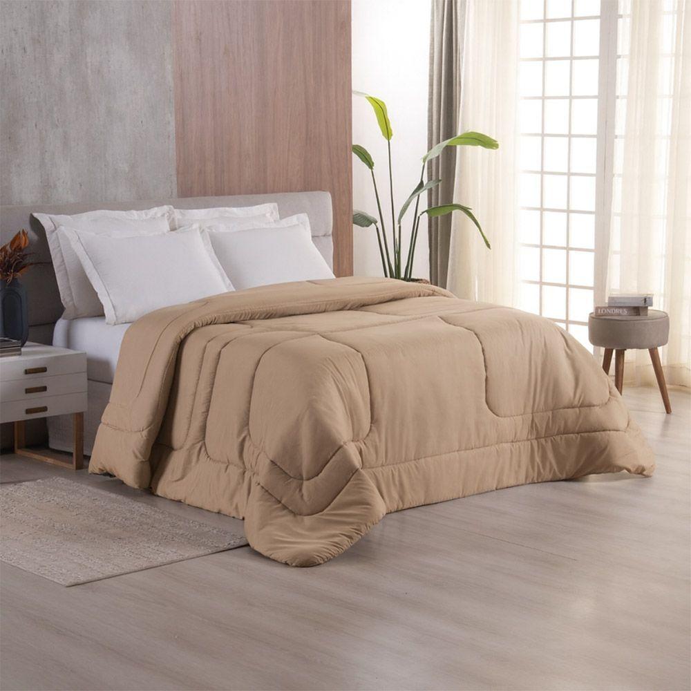 Edredom Bali Liso Queen 01 Peça Micropercal Dupla Face 400 Fios Macio - Bege - 100% Poliéster
