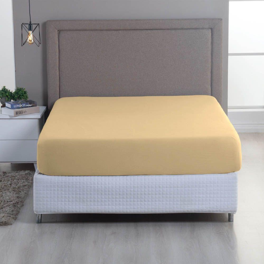 Lençol De Baixo Minimal Queen Avulso Com Elástico 01 Peça Malha 100% Algodão - Mostarda