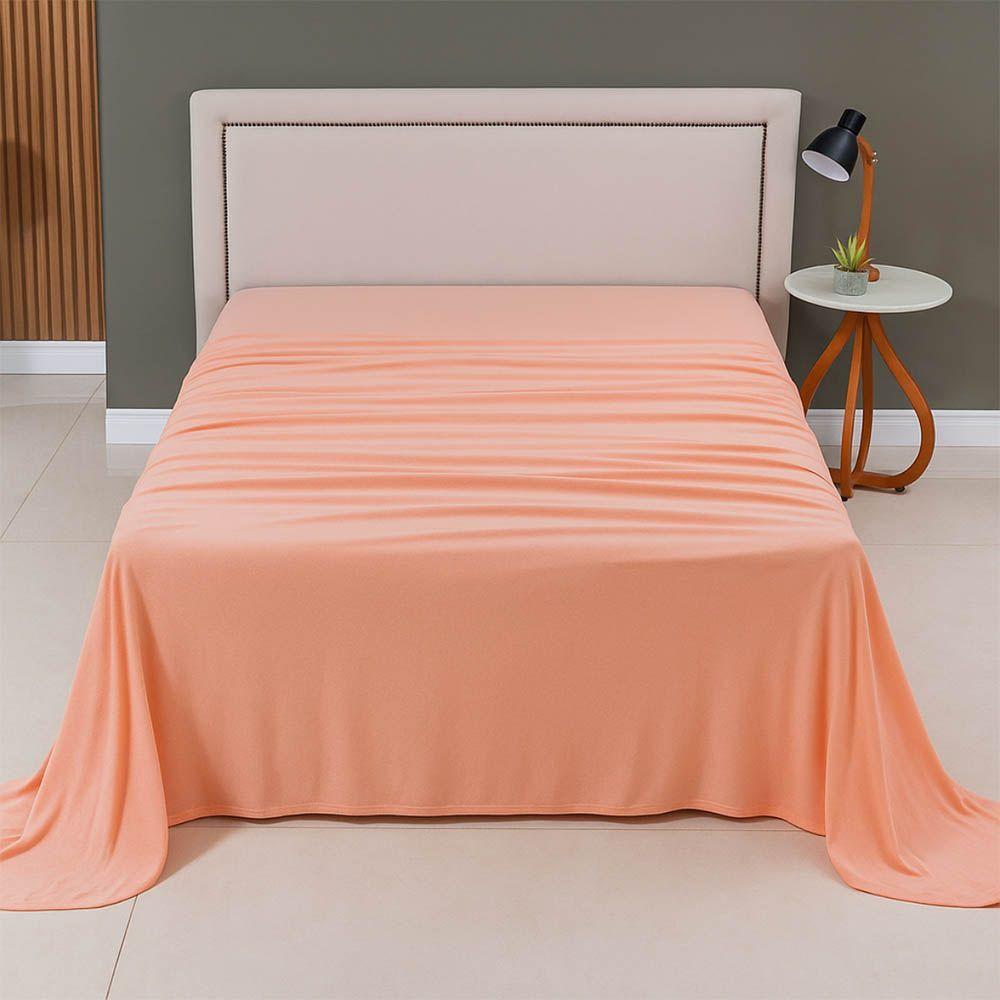 Lençol De Cima Avulso Minimal Liso Queen 01 Peça Malha 100% Algodão - Salmão