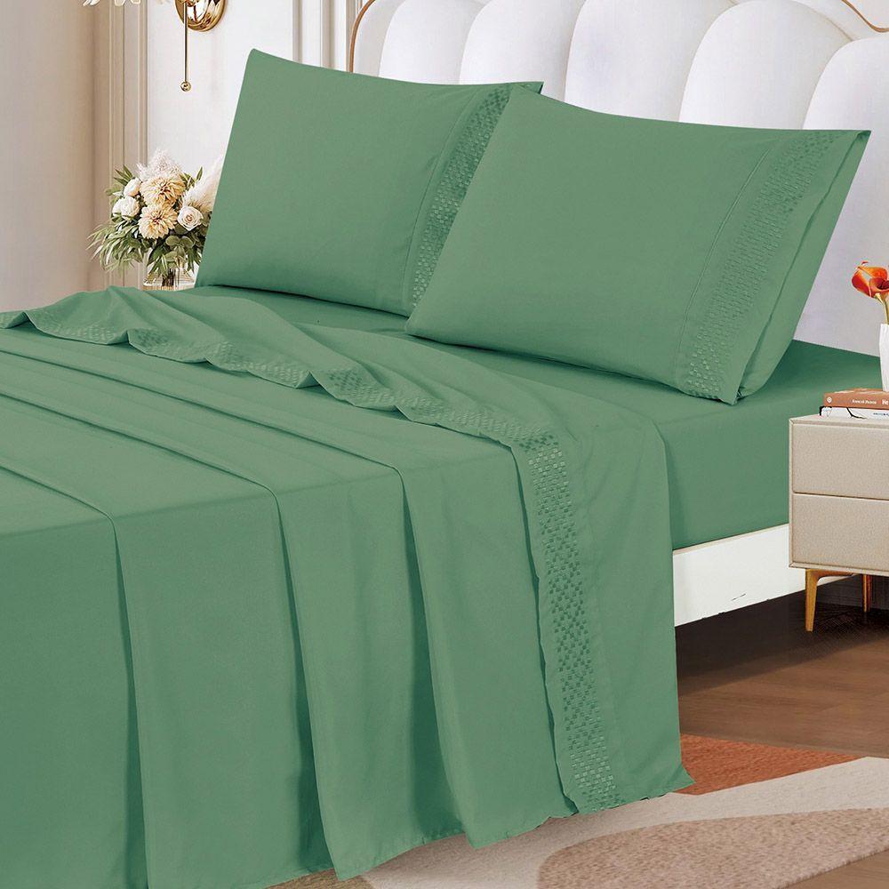 Jogo De Lençol Quadri Casal 4 Peças Micropercal 300 Fios Bordado - Verde - 100% Poliéster
