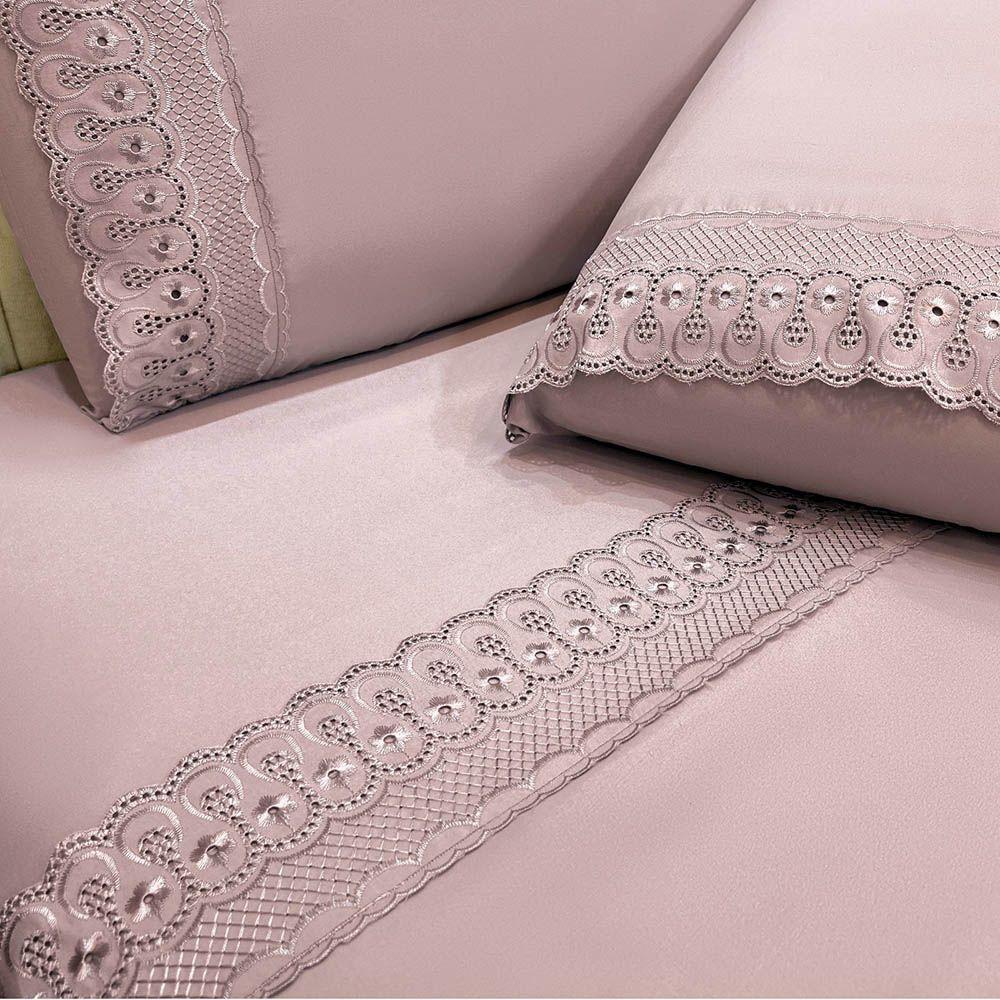 Jogo De Lençol Clara Queen 4 Peças Micropercal 300 Fios Bordado Inglês - Malva - 100% Poliéster