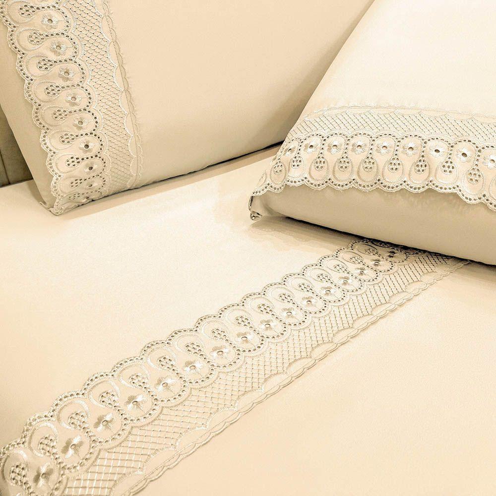 Jogo De Lençol Clara King 4 Peças Micropercal 300 Fios Bordado Inglês - Palha - 100% Poliéster