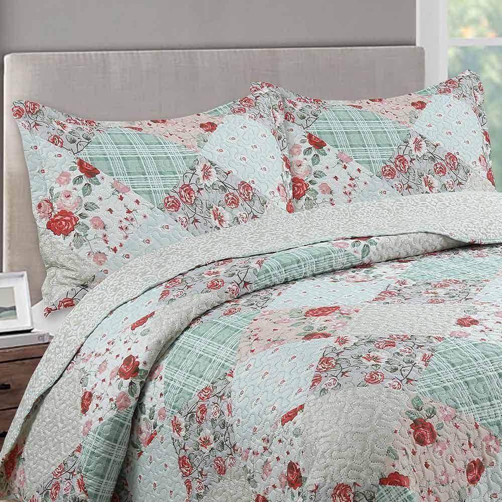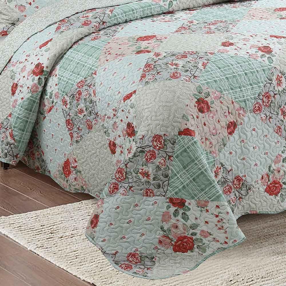 Kit Cobre Leito Colcha Daily King 3 Peças Dupla Face Estampado - Brenda Floral - 100% Poliéster