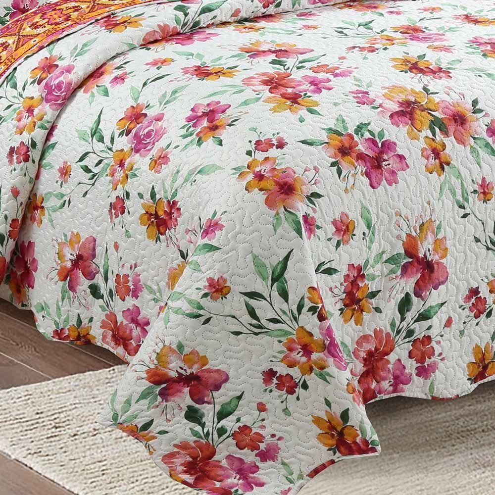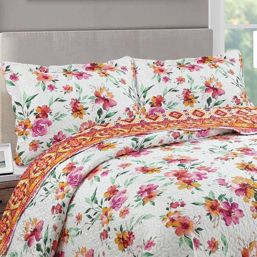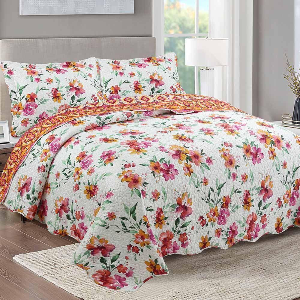 Kit Cobre Leito Colcha Daily King 3 Peças Dupla Face Estampado - Lilian Floral - 100% Poliéster
