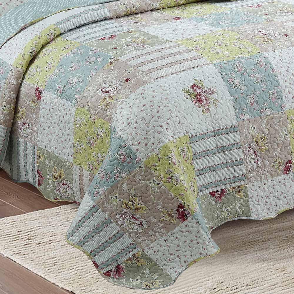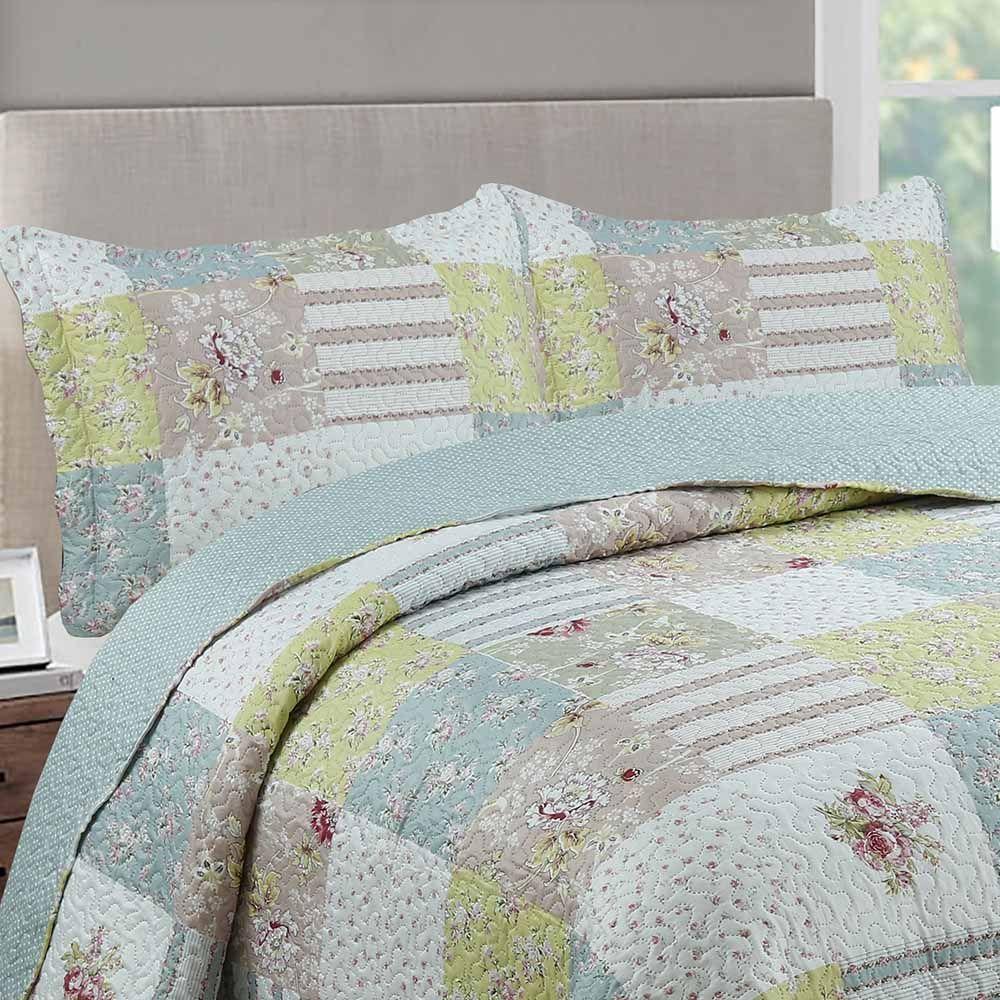 Kit Cobre Leito Colcha Daily King 3 Peças Dupla Face Estampado - Patchwork Maite - 100% Poliéster