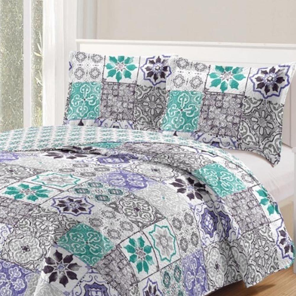 Kit Cobre Leito Colcha Daily Casal 3 Peças Dupla Face Estampado Floral - Floral 26 - 100% Poliéster