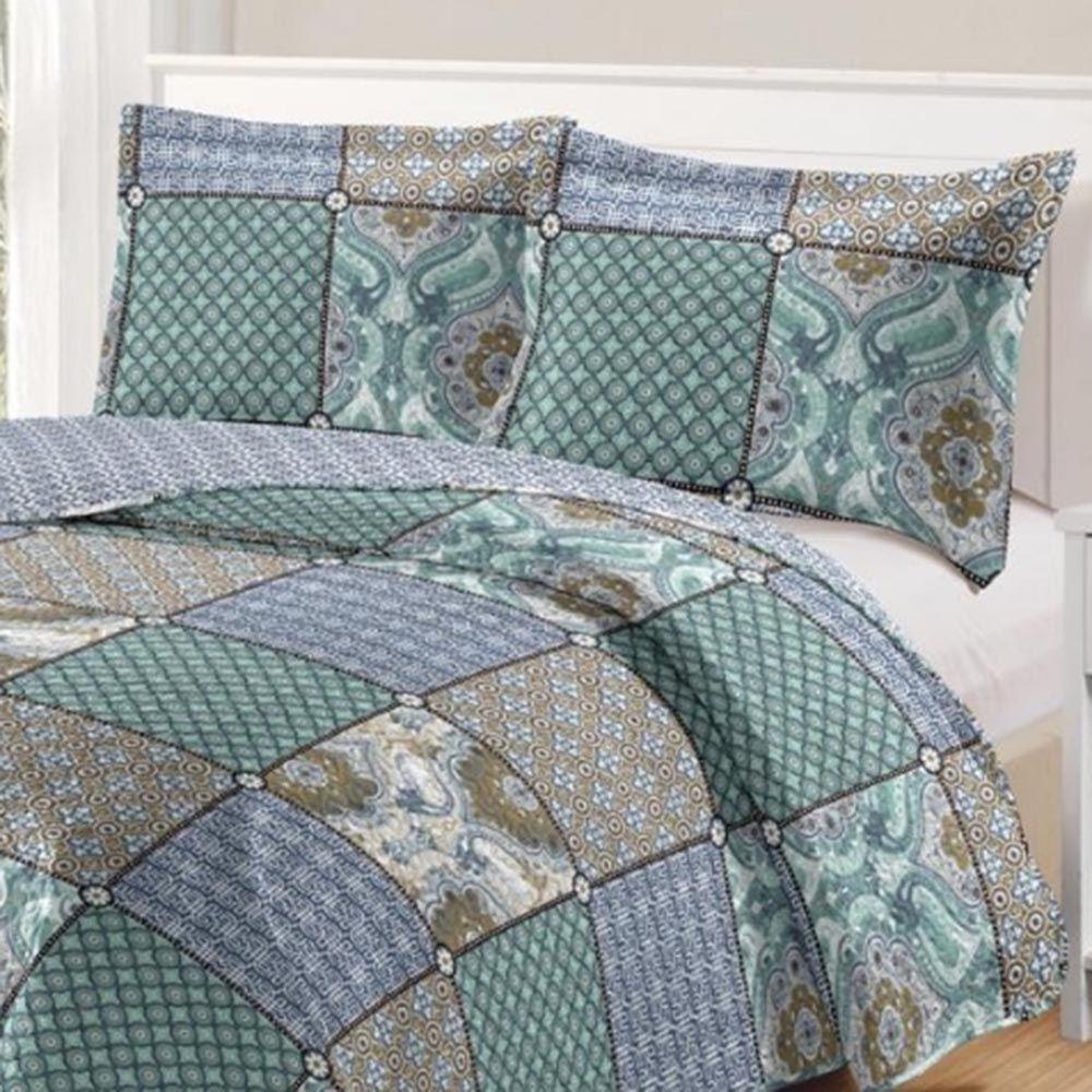 Kit Cobre Leito Colcha Daily Casal 3 Peças Dupla Face Estampado - Patchwork 27 - 100% Poliéster