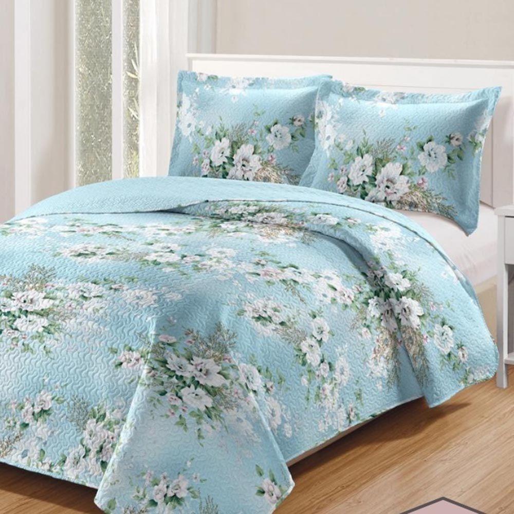 Kit Cobre Leito Colcha Daily Casal 3 Peças Dupla Face Estampado Floral - Floral 25 - 100% Poliéster