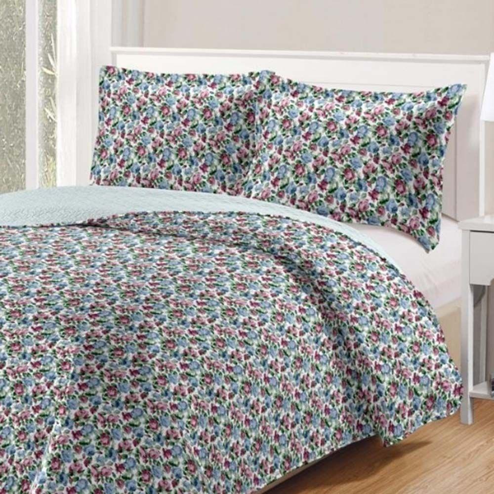 Kit Cobre Leito Colcha Daily Casal 3 Peças Dupla Face Estampado Floral - Floral 21 - 100% Poliéster