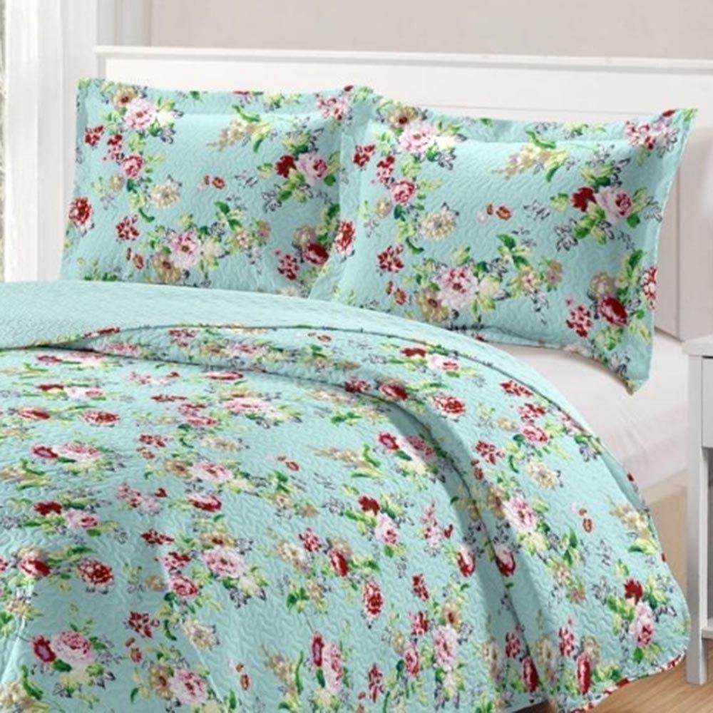 Kit Cobre Leito Colcha Daily Casal 3 Peças Dupla Face Estampado - Floral 28 - 100% Poliéster