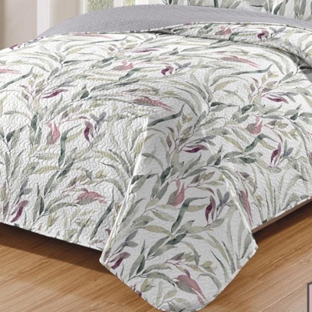 Kit Cobre Leito Colcha Daily Casal 3 Peças Dupla Face Estampado - Floral 30 - 100% Poliéster