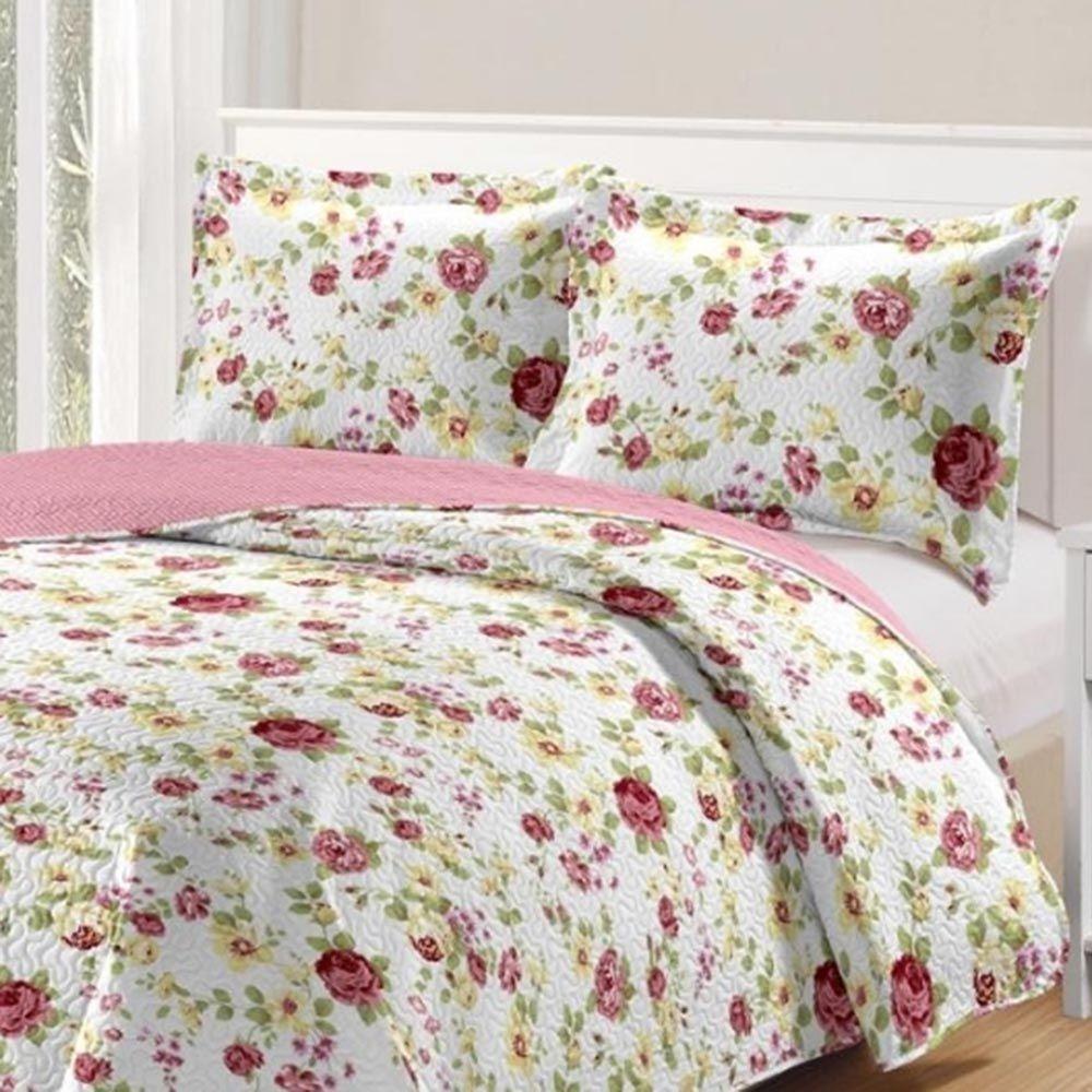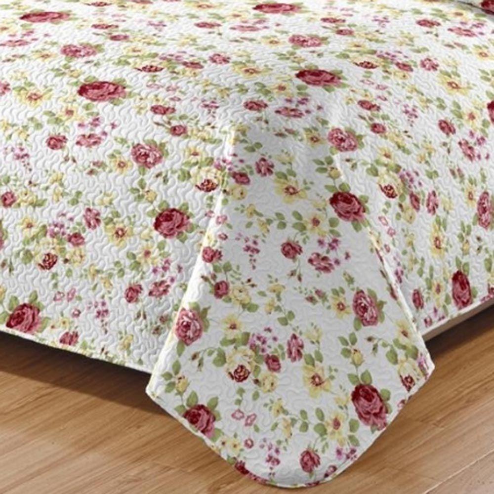 Kit Cobre Leito Colcha Daily Casal 3 Peças Dupla Face Estampado - Floral 32 - 100% Poliéster
