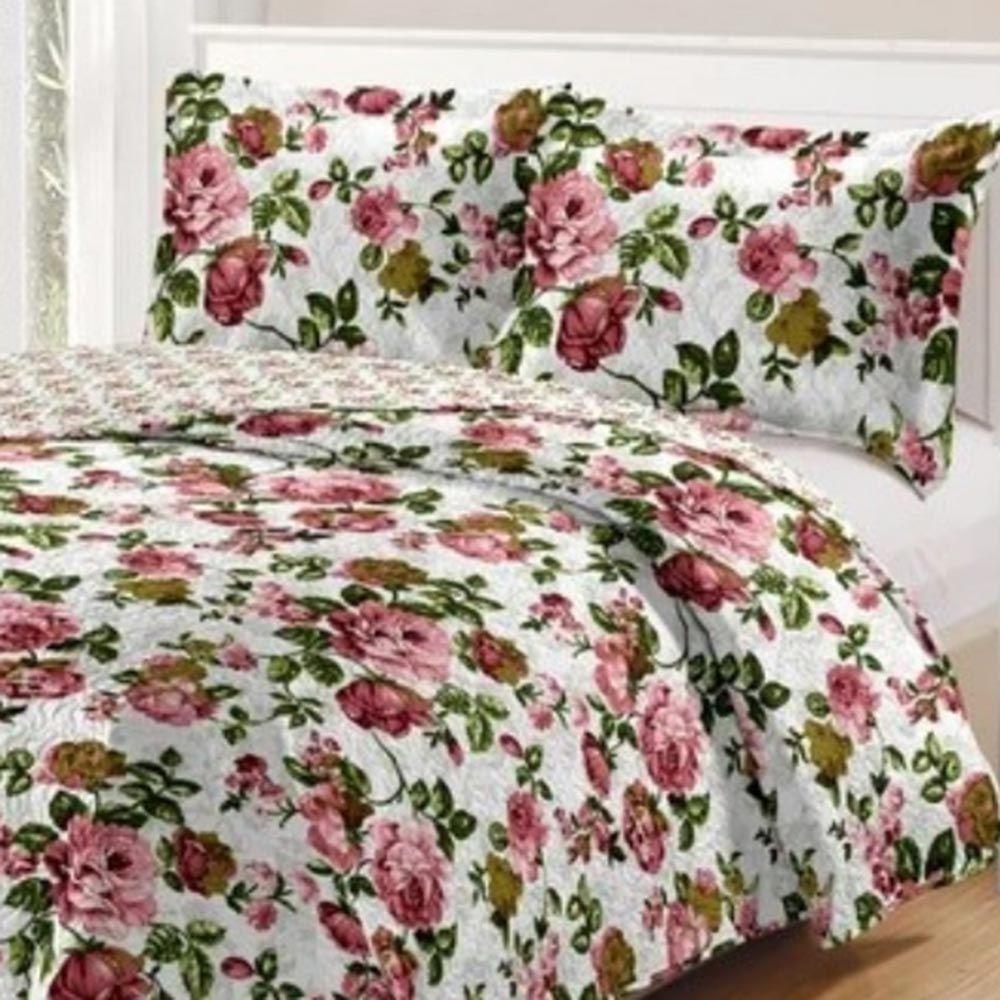 Kit Cobre Leito Colcha Daily Casal 3 Peças Dupla Face Estampado - Floral 48 - 100% Poliéster