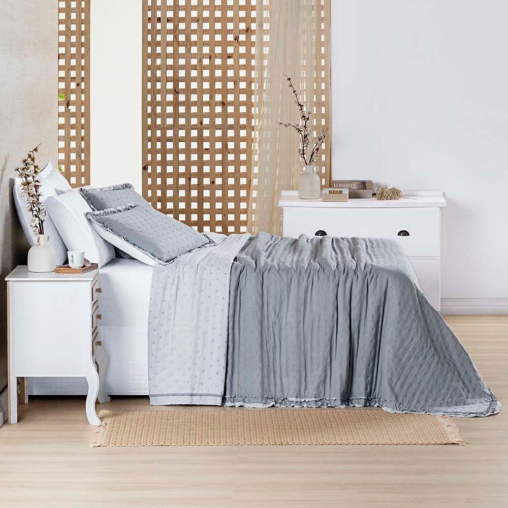 Kit Cobre Leito Colcha Lilian Casal 3 Peças Matelado Dupla Face Micropercal 200 Fios - Cinza - 100% Poliéster