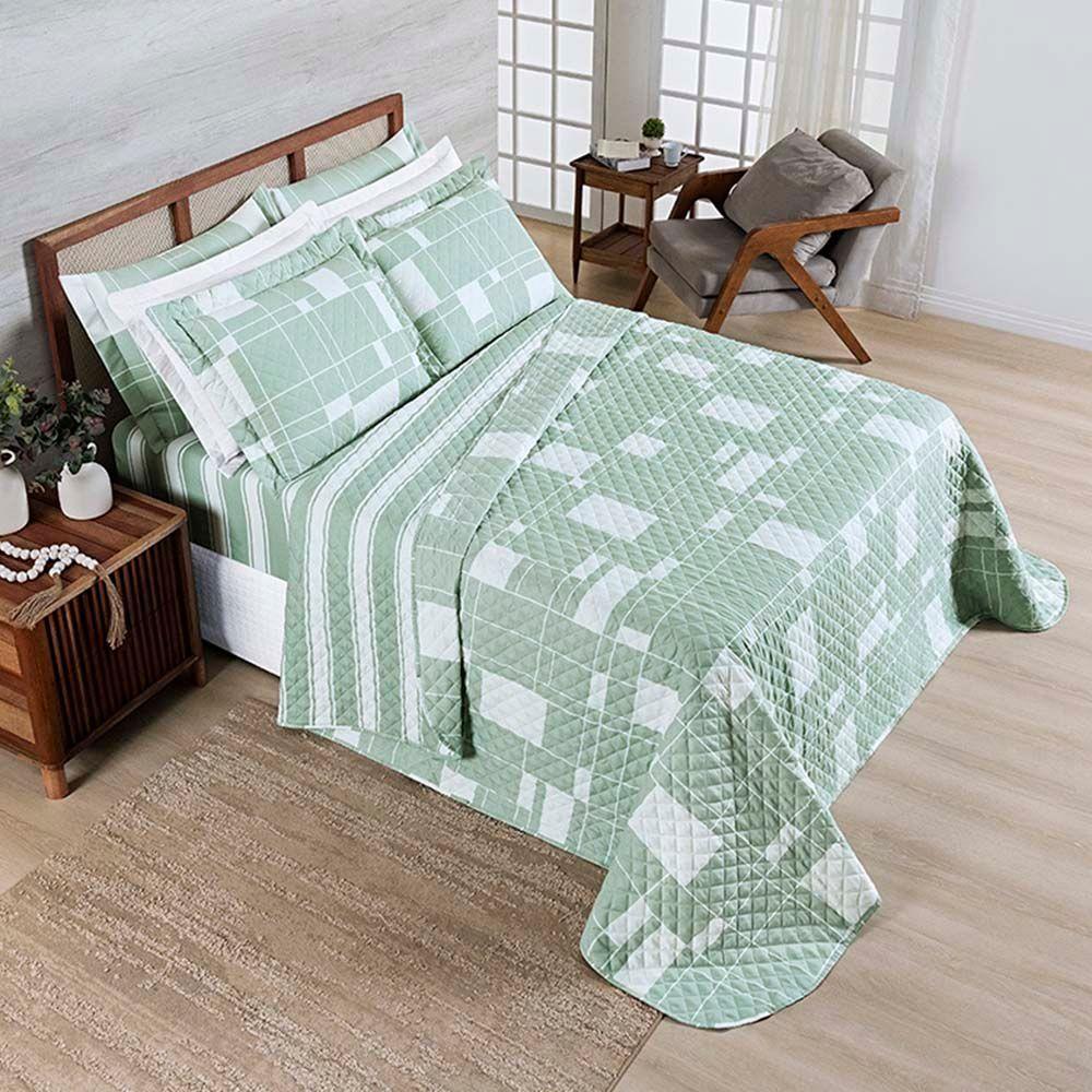 Kit Cobre Leito Colcha Benim Casal 3 Peças Dupla Face Micropercal 400 Fios - Adria Verde - 100% Poliéster