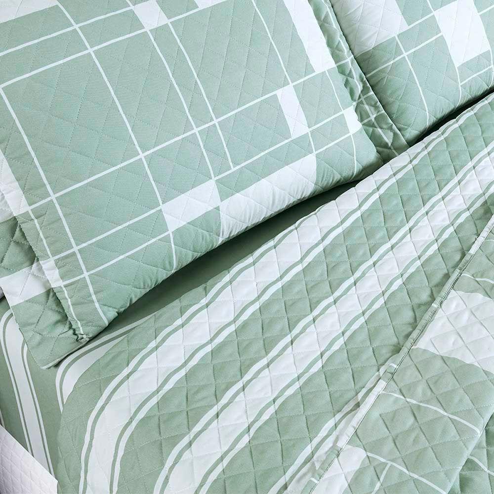 Kit Cobre Leito Colcha Benim King 3 Peças Dupla Face Micropercal 400 Fios - Adria Verde - 100% Poliéster