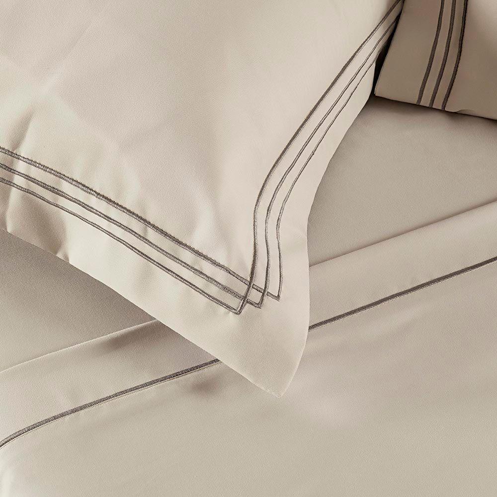 Jogo De Lençol Adeli Casal 4 Peças Micropercal 400 Fios Detalhe Bordado - Cáqui - 100% Poliéster