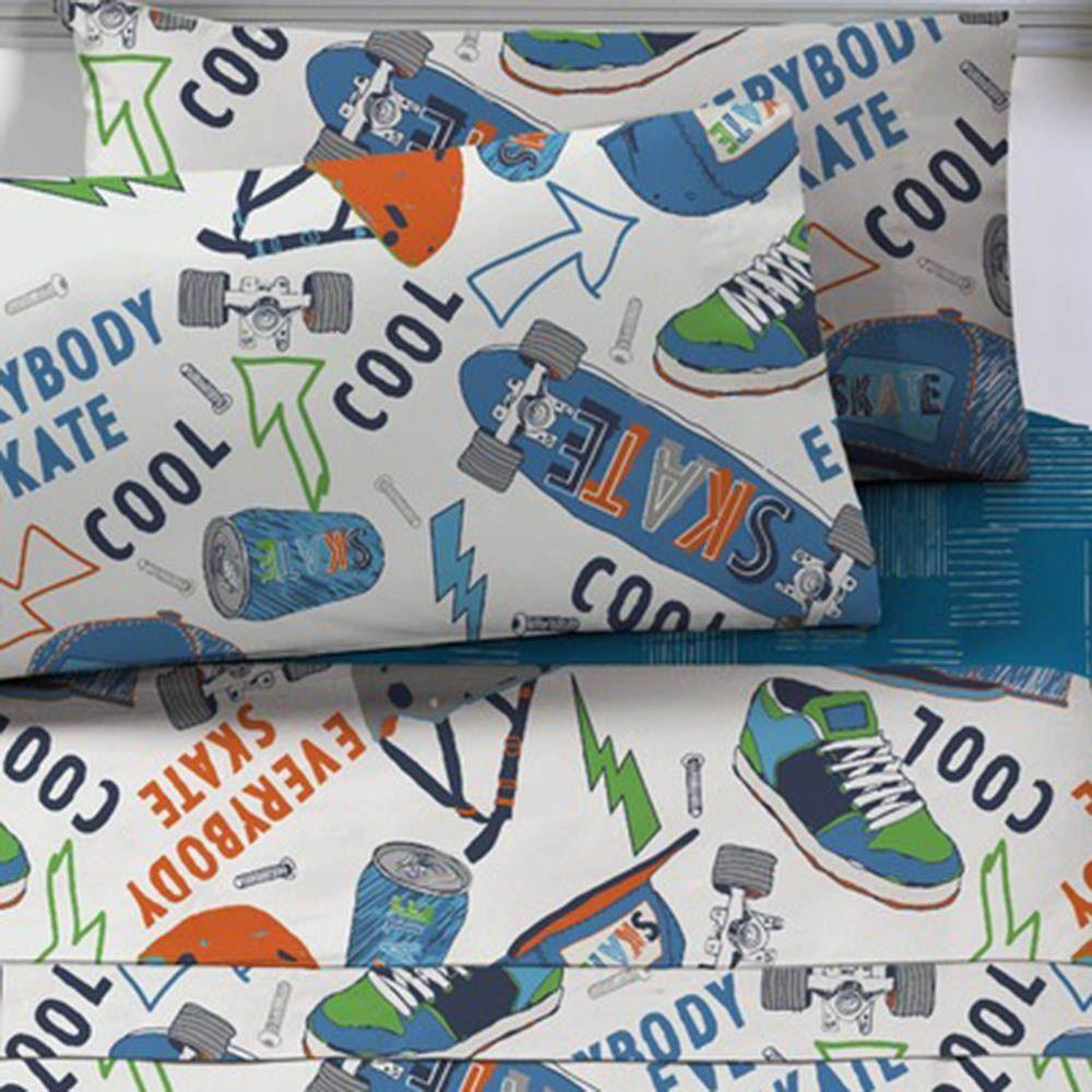 Jogo De Lençol Planeta Mágico Solteiro 3 Peças Infantil Estampado - Skate - 100% Poliéster