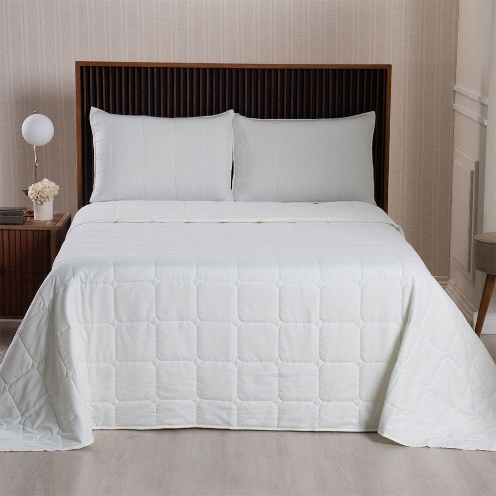Kit Cobre Leito Colcha Lunar Solteiro 2 Peças 400 Fios Matelado Dupla Face - Palha - 100% Poliéster