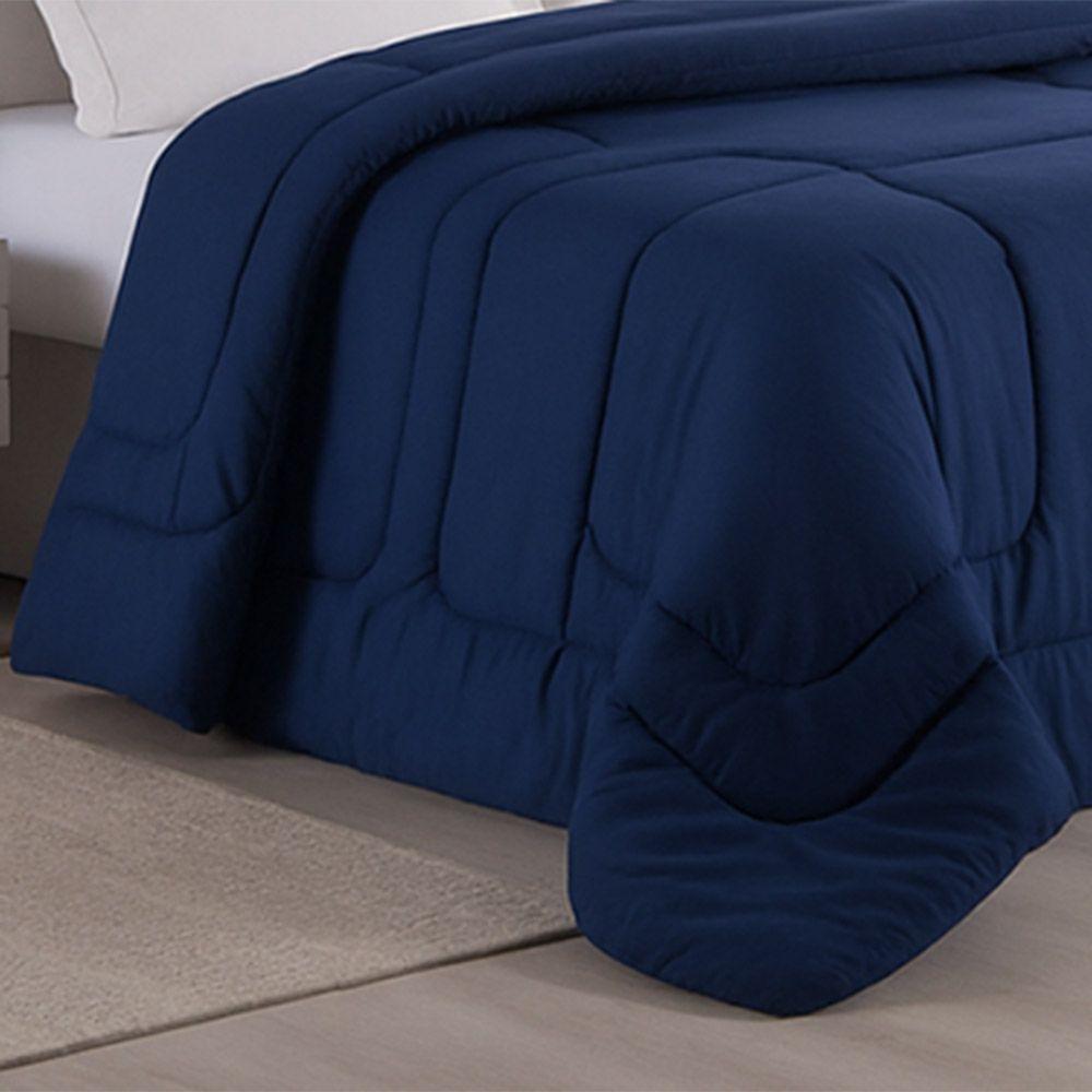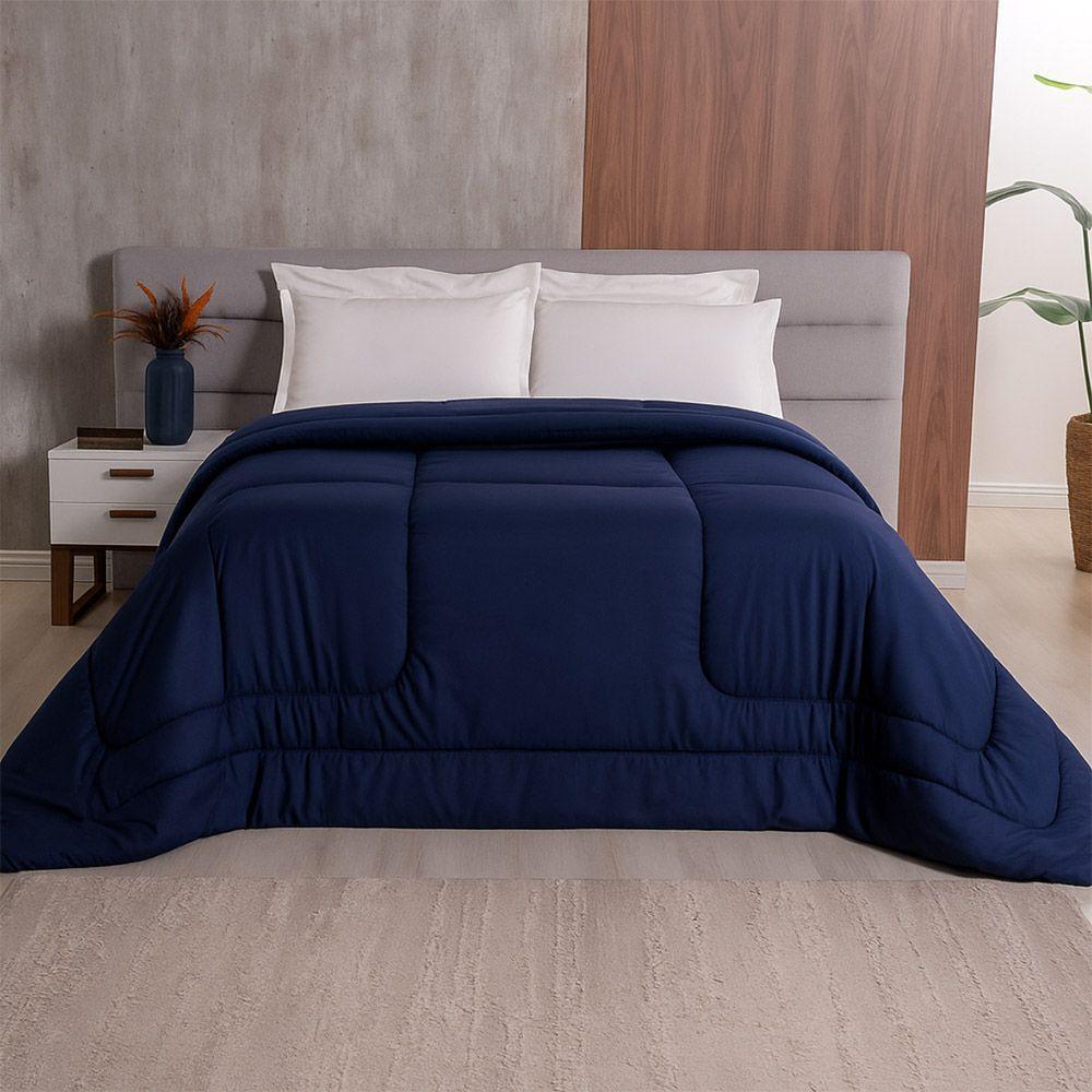 Edredom Bali Liso Casal 01 Peça Micropercal Dupla Face 400 Fios Macio - Azul Marinho - 100% Poliéster