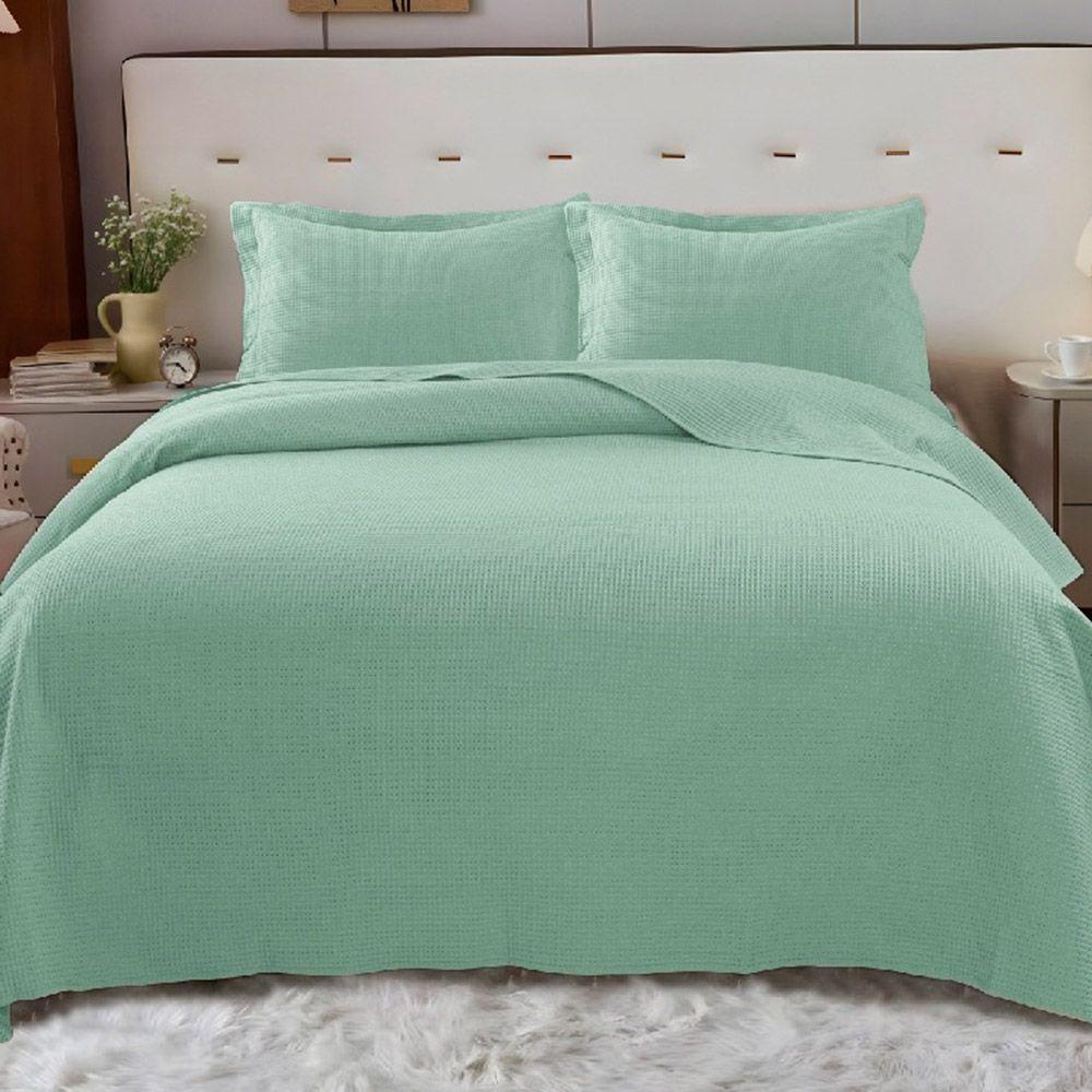 Kit Cobre Leito Colcha Afeto Casal 3 Peças Percal 300 Fios Peletizado - Verde - 100% Poliéster