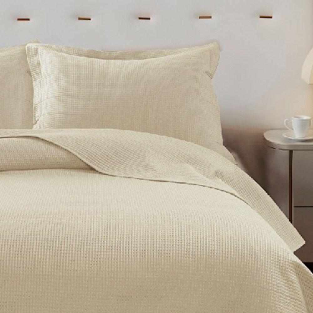 Kit Cobre Leito Colcha Afeto Queen 3 Peças Percal 300 Fios Peletizado - Bege - 100% Poliéster