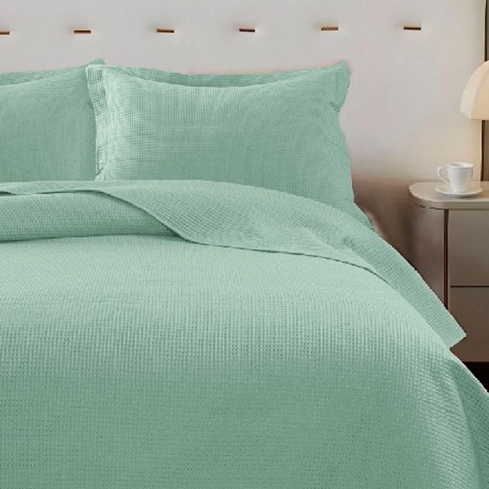 Kit Cobre Leito Colcha Afeto Queen 3 Peças Percal 300 Fios Peletizado - Verde - 100% Poliéster