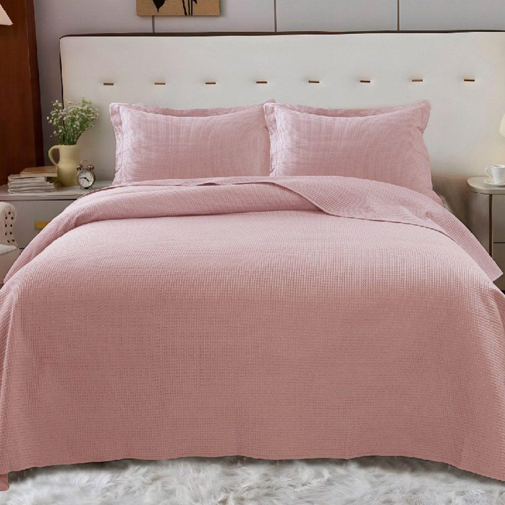 Kit Cobre Leito Colcha Afeto King 3 Peças Percal 300 Fios Peletizado - Malva - 100% Poliéster