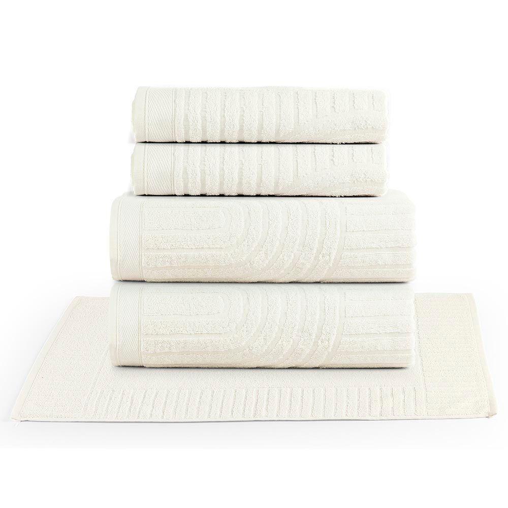 Jogo De Banho Toalhas Auri 100% Algodão Fio Penteado Macio 05 Peças Dunas - Off White