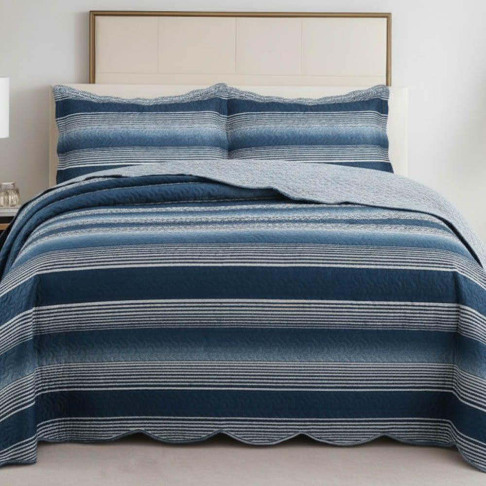 Kit Cobre Leito Colcha Magnus Solteiro 2 Peças Dupla Face Estampado Geométrico - Marinho - 100% PoliésterO Cobre Leito Magnus combina praticidade e estilo, trazendo um visual moderno para transformar o quarto com facilidade. Produzido em 100% poliéster, oferece toque macio, leveza e alta durabilidade, sendo resistente ao uso diário e de fácil manutenção.Seu design dupla face permite alternar entre duas estampas coordenadas, criando composições diferentes conforme a ocasião. O matelado garante um acabamento elegante e estruturado, mantendo o cobre leito sempre alinhado e sofisticado.Uma opção versátil, decorativa e funcional para quem deseja renovar o ambiente com charme e praticidade.Contém na embalagem 02 PEÇAS,SENDO:01 Cobre Leito 2,40m x 1,60m01 Porta travesseiro 70cm x 50cmComposição:Tecido: 100% PoliésterAtenção: As cores do produto podem apresentar pequenas variações de acordo com as configurações da tela do seu dispositivo.