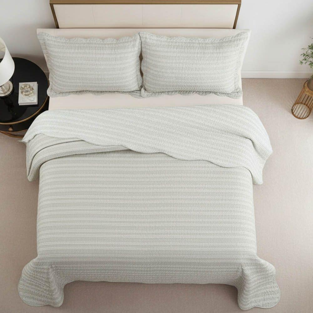 Kit Cobre Leito Colcha Magnus Queen 3 Peças Dupla Face Estampado Geométrico - Bege - 100% PoliésterO Cobre Leito Magnus combina praticidade e estilo, trazendo um visual moderno para transformar o quarto com facilidade. Produzido em 100% poliéster, oferece toque macio, leveza e alta durabilidade, sendo resistente ao uso diário e de fácil manutenção.Seu design dupla face permite alternar entre duas estampas coordenadas, criando composições diferentes conforme a ocasião. O matelado garante um acabamento elegante e estruturado, mantendo o cobre leito sempre alinhado e sofisticado.Uma opção versátil, decorativa e funcional para quem deseja renovar o ambiente com charme e praticidade.Contém na embalagem 03 PEÇAS,SENDO:01 Cobre Leito 2,60m x 2,40m02 Porta travesseiros 70cm x 50cmComposição:Tecido: 100% PoliésterAtenção: As cores do produto podem apresentar pequenas variações de acordo com as configurações da tela do seu dispositivo.