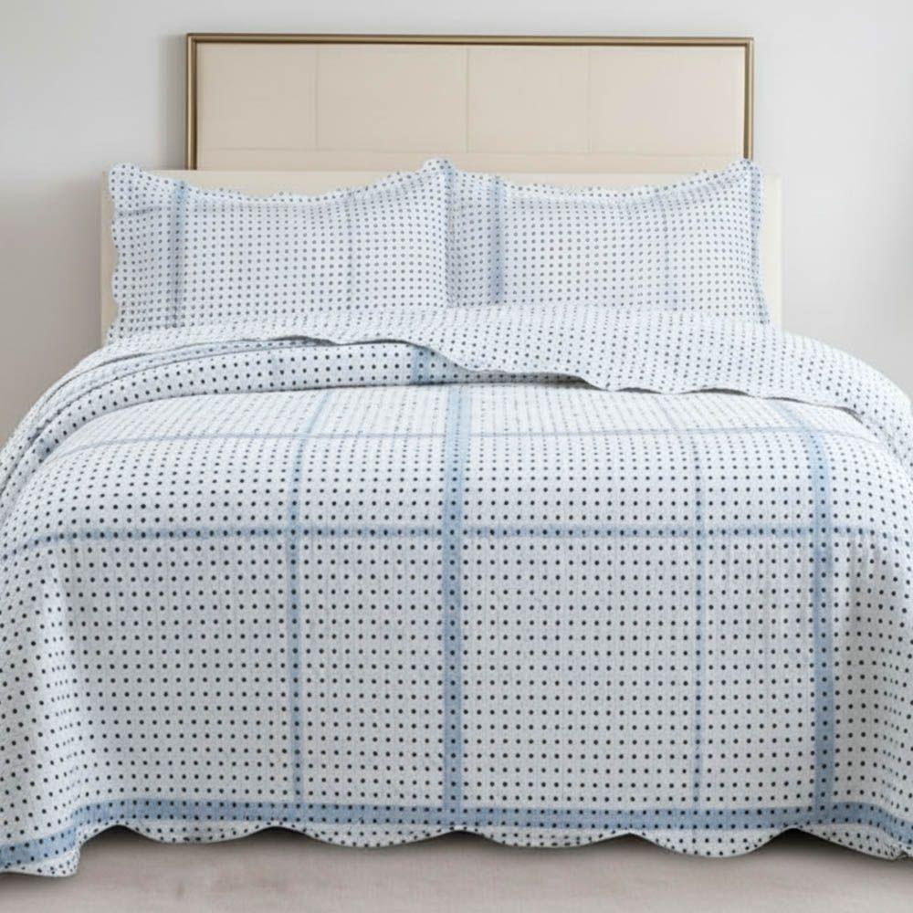 Kit Cobre Leito Colcha Magnus Queen 3 Peças Dupla Face Estampado Geométrico - Bolinhas - 100% Poliéster