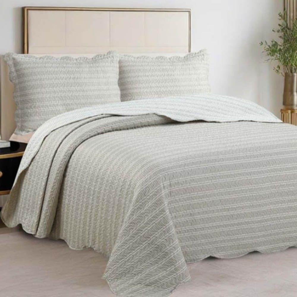 Kit Cobre Leito Colcha Magnus Super King 3 Peças Dupla Face Estampado Geométrico - Bege - 100% PoliésterO Cobre Leito Magnus combina praticidade e estilo, trazendo um visual moderno para transformar o quarto com facilidade. Produzido em 100% poliéster, oferece toque macio, leveza e alta durabilidade, sendo resistente ao uso diário e de fácil manutenção.Seu design dupla face permite alternar entre duas estampas coordenadas, criando composições diferentes conforme a ocasião. O matelado garante um acabamento elegante e estruturado, mantendo o cobre leito sempre alinhado e sofisticado.Uma opção versátil, decorativa e funcional para quem deseja renovar o ambiente com charme e praticidade.Contém na embalagem 03 PEÇAS,SENDO:01 Cobre Leito 3,00m x 2,80m02 Porta travesseiros 70cm x 50cmComposição:Tecido: 100% PoliésterAtenção: As cores do produto podem apresentar pequenas variações de acordo com as configurações da tela do seu dispositivo.