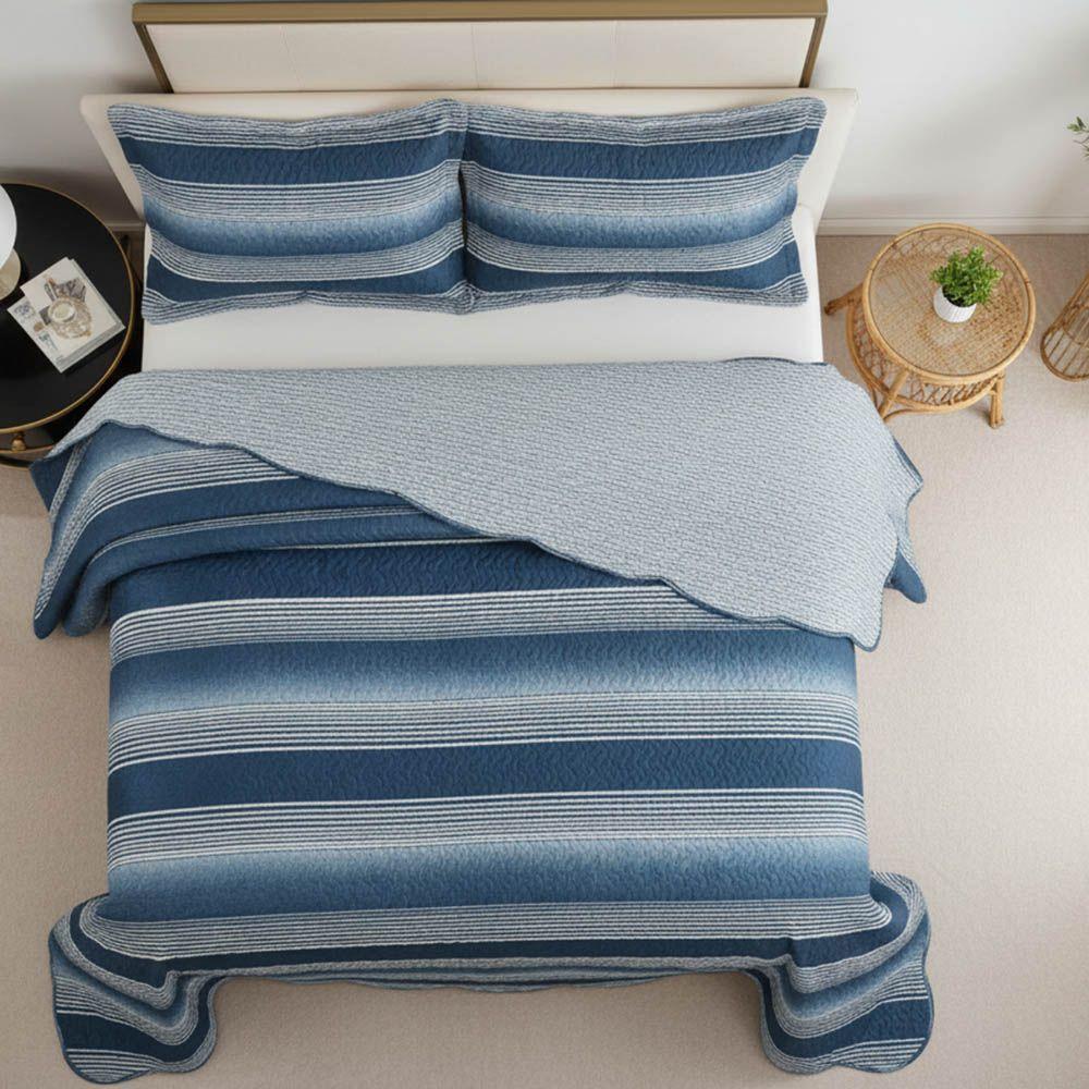 Kit Cobre Leito Colcha Magnus Super King 3 Peças Dupla Face Estampado Geométrico - Marinho - 100% Poliéster