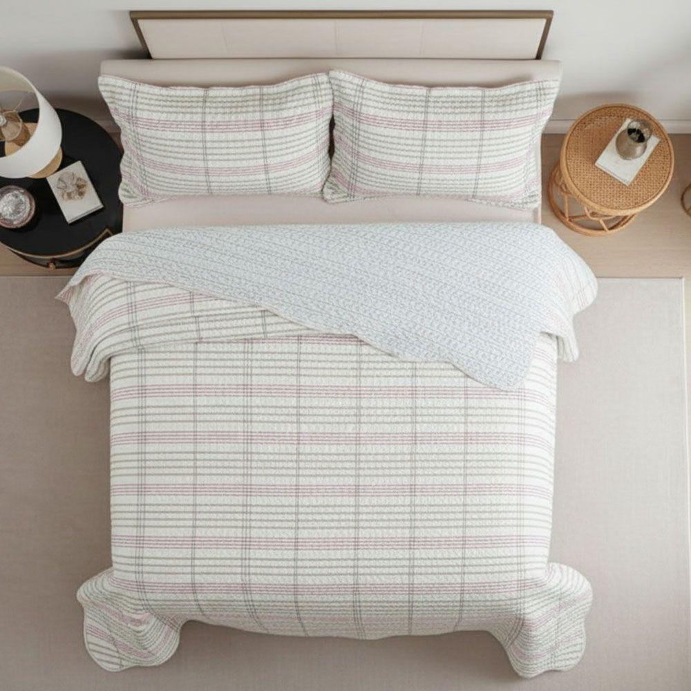 Kit Cobre Leito Colcha Magnus Super King 3 Peças Dupla Face Estampado Geométrico - Rose - 100% Poliéster