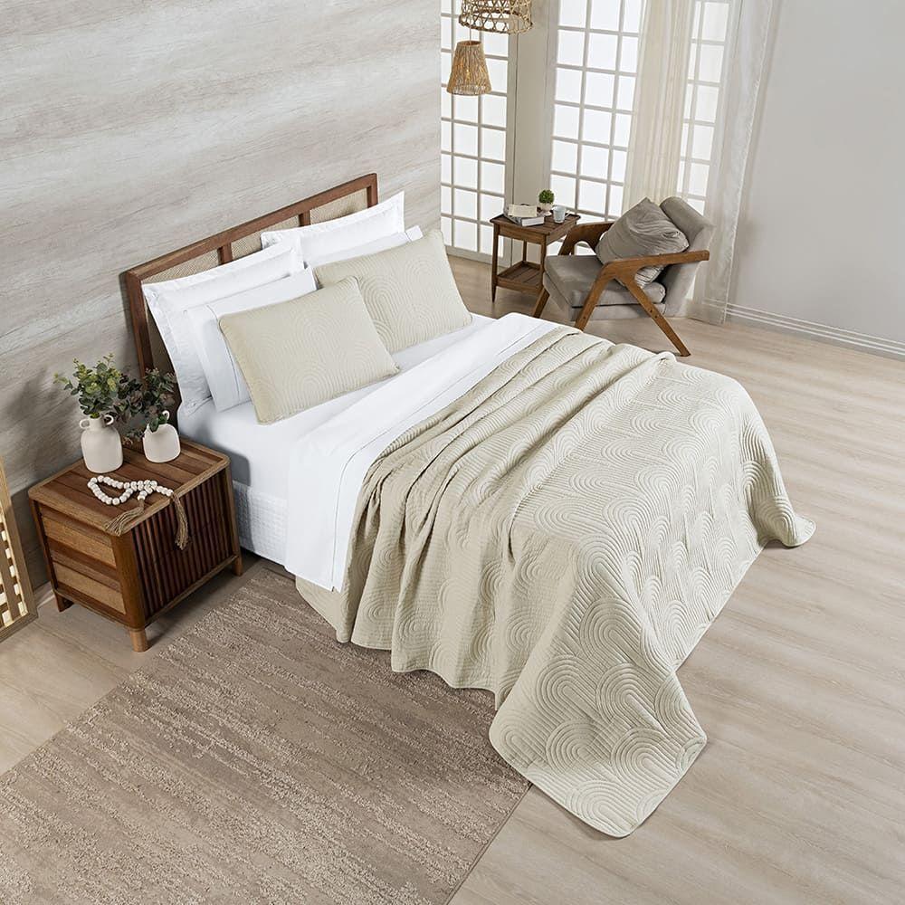 Kit Cobre Leito Colcha Harmony King 3 Peças Matelado Micropercal 200 Fios - Baunilha - 100% Poliéster
