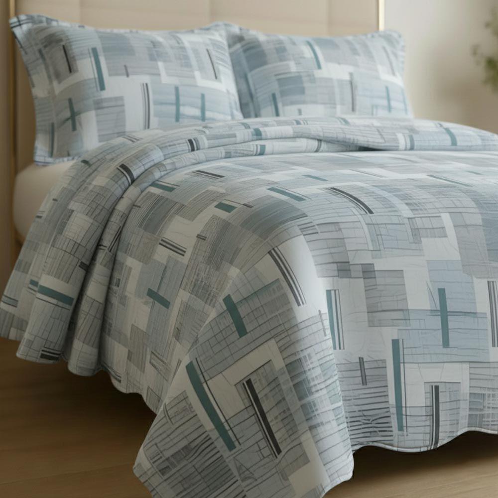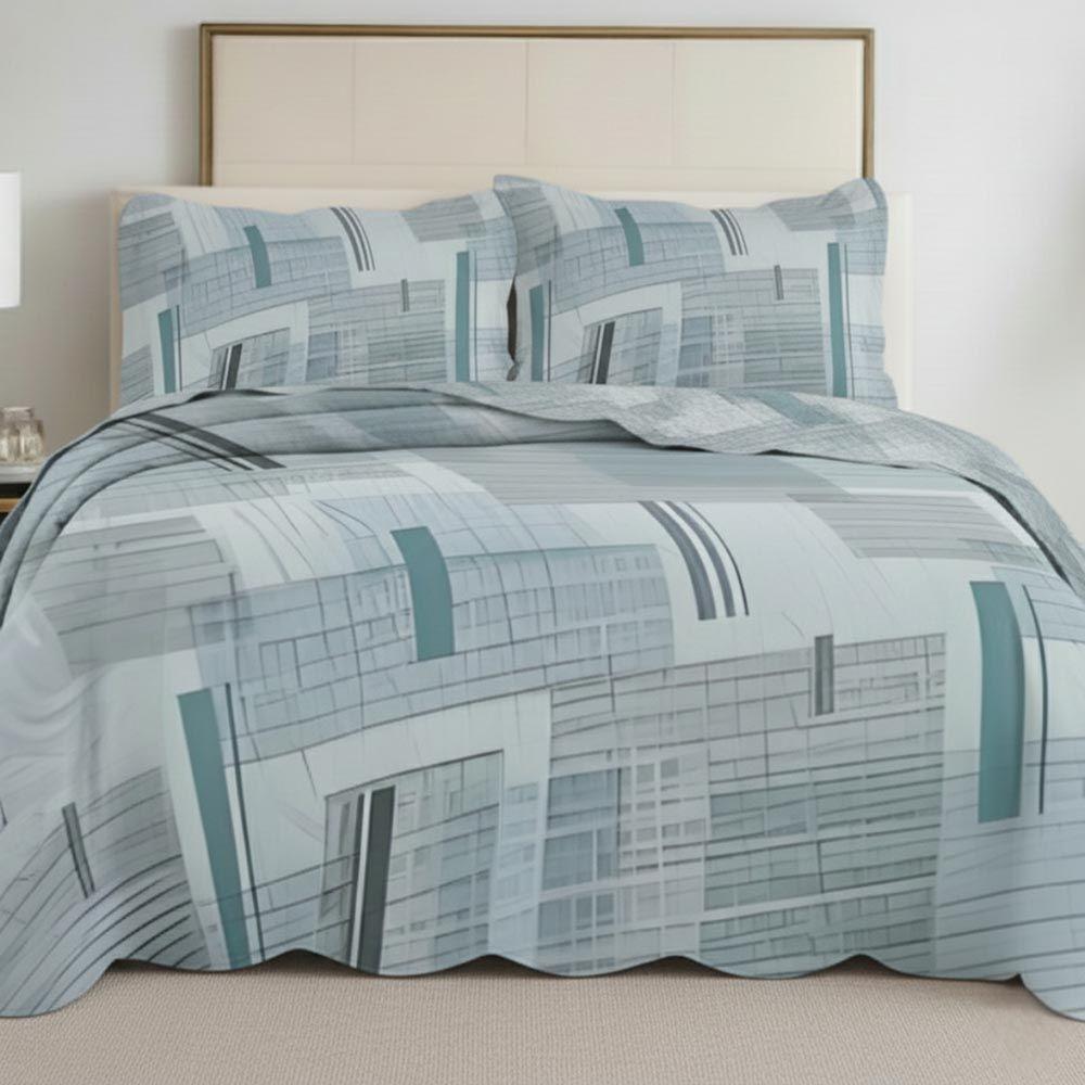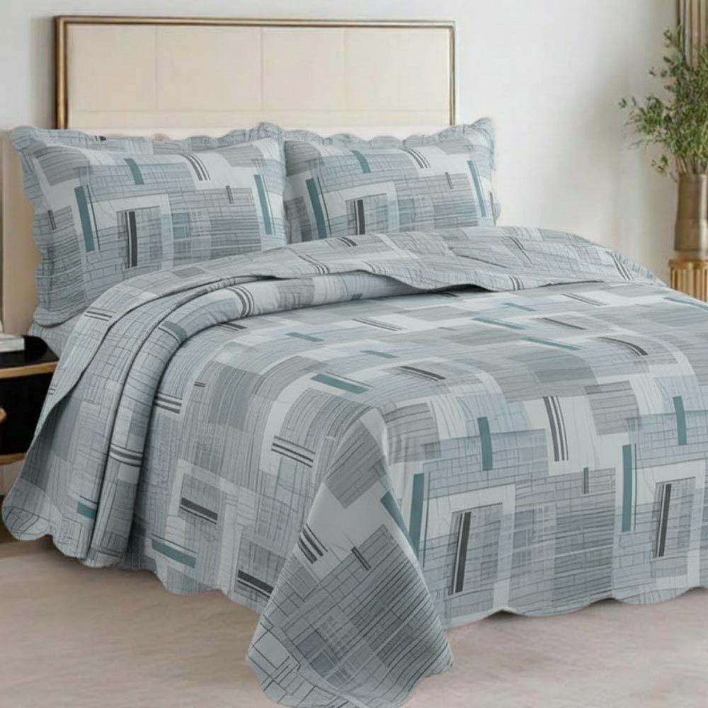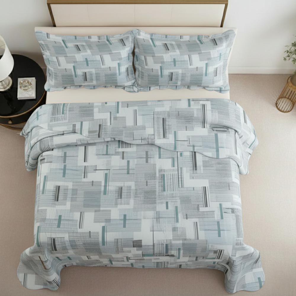 Kit Cobre Leito Colcha Magnus Queen 3 Peças Dupla Face Estampado Geométrico - Linha Moderna - 100% Poliéster