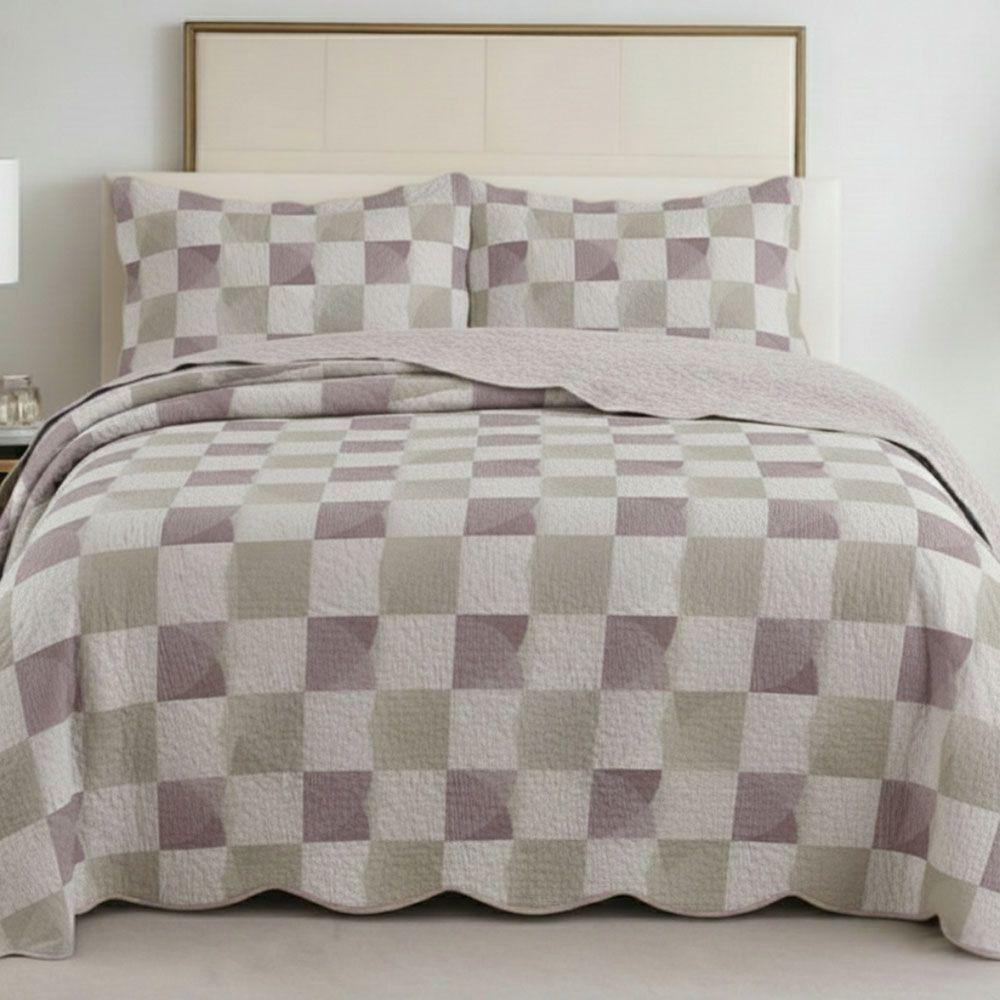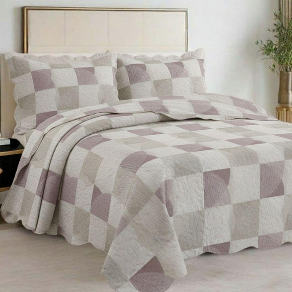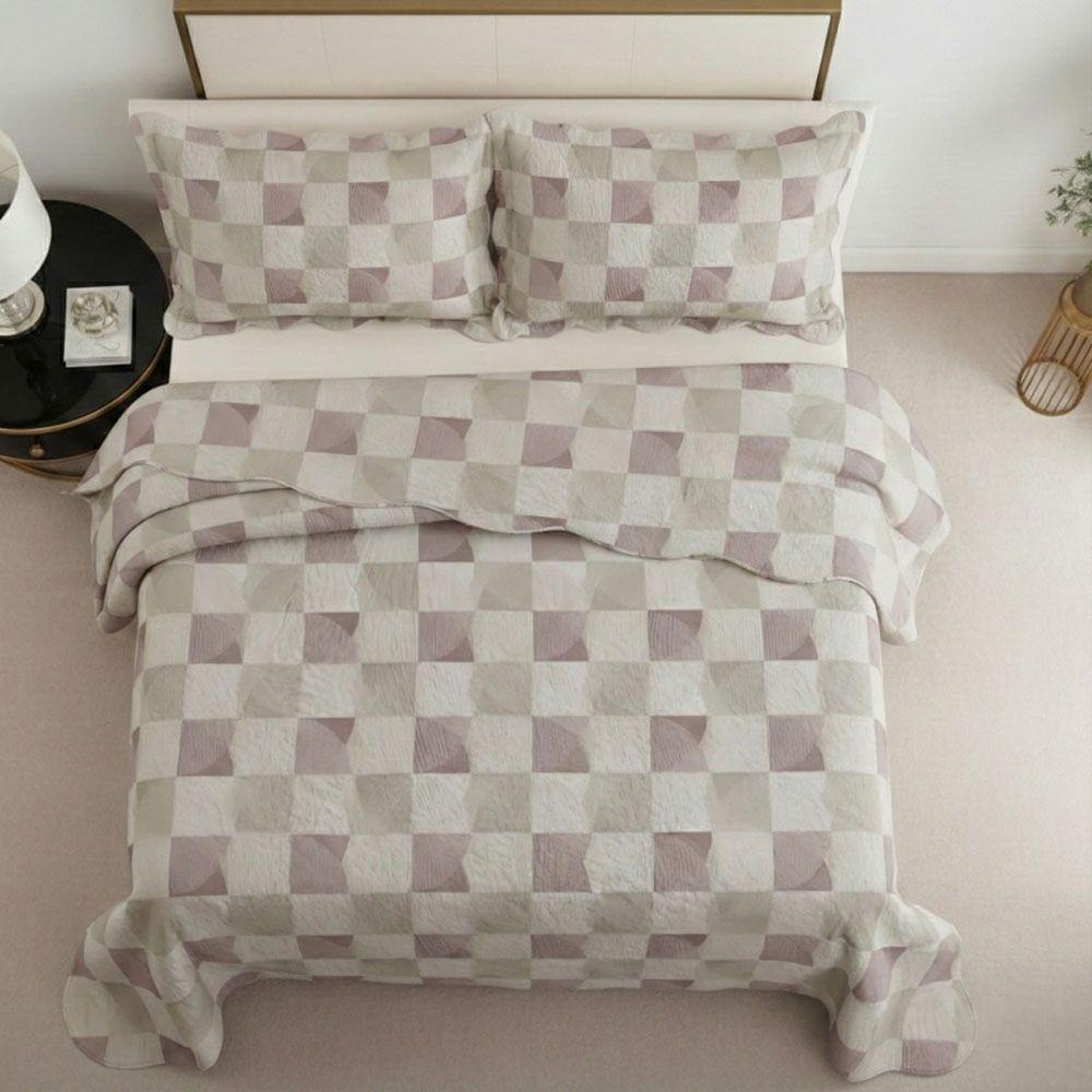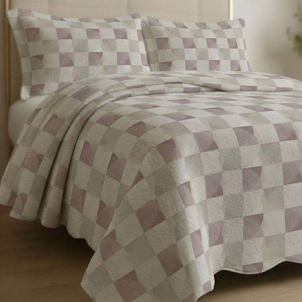 Kit Cobre Leito Colcha Magnus Queen 3 Peças Dupla Face Estampado Geométrico - Quadrado Chic - 100% Poliéster