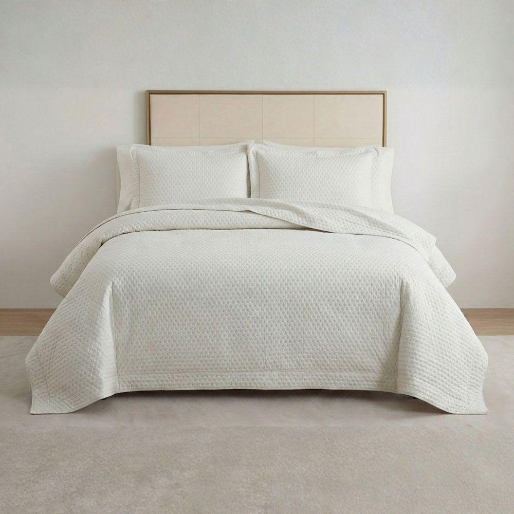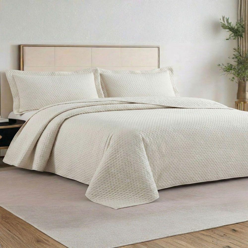 Kit Cobre Leito Colcha Charlote Casal 3 Peças Dupla Face Liso Classic - Palha - 100% Poliéster