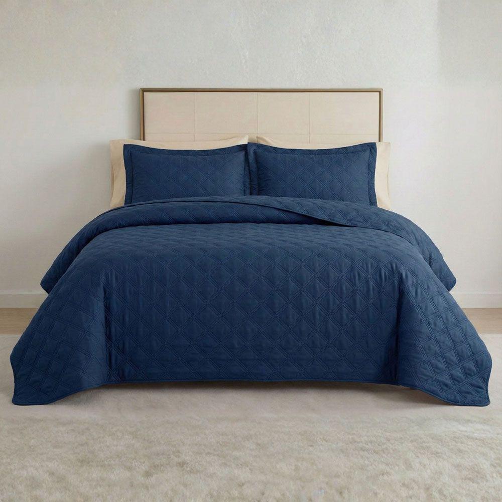 Kit Cobre Leito Colcha Charlote Casal 3 Peças Dupla Face Liso Classic - Azul Marinho - 100% Poliéster